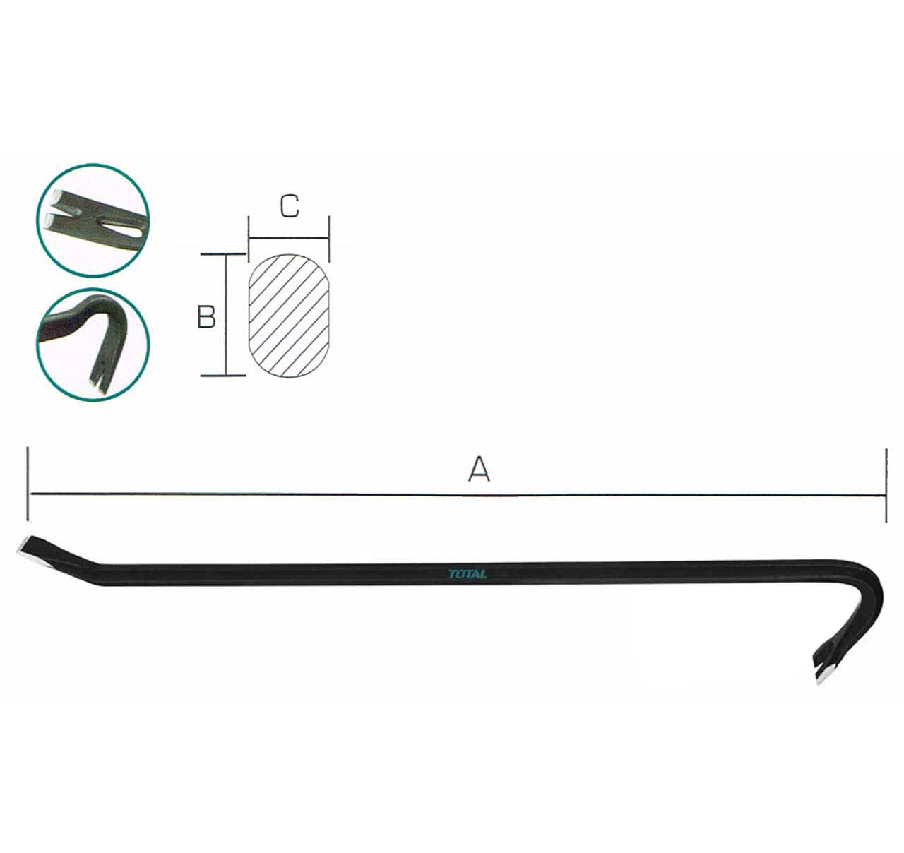 - Профессиональный (industrial) усиленный лом-гвоздодер 900 мм TOTAL THT431362 широко применяется при строительных и монтажных работах.