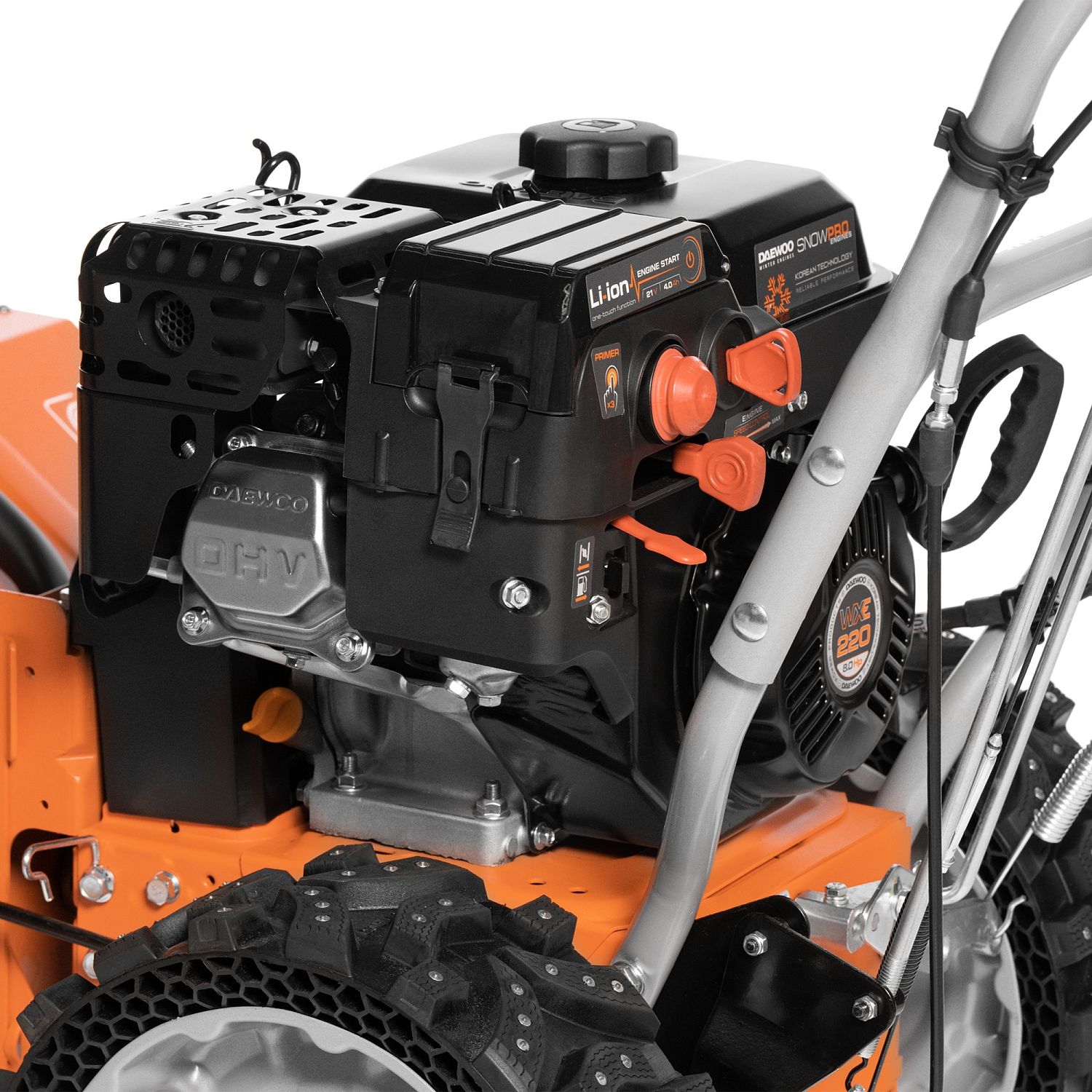 - Двигатель DAEWOO зимней серии WXE 220. Уверенный запуск при отрицательных температурах. Электрозапуск от съемной батареи 21В. Повышенный моторный ресурс. Увеличенный глушитель и сниженный уровень шума.