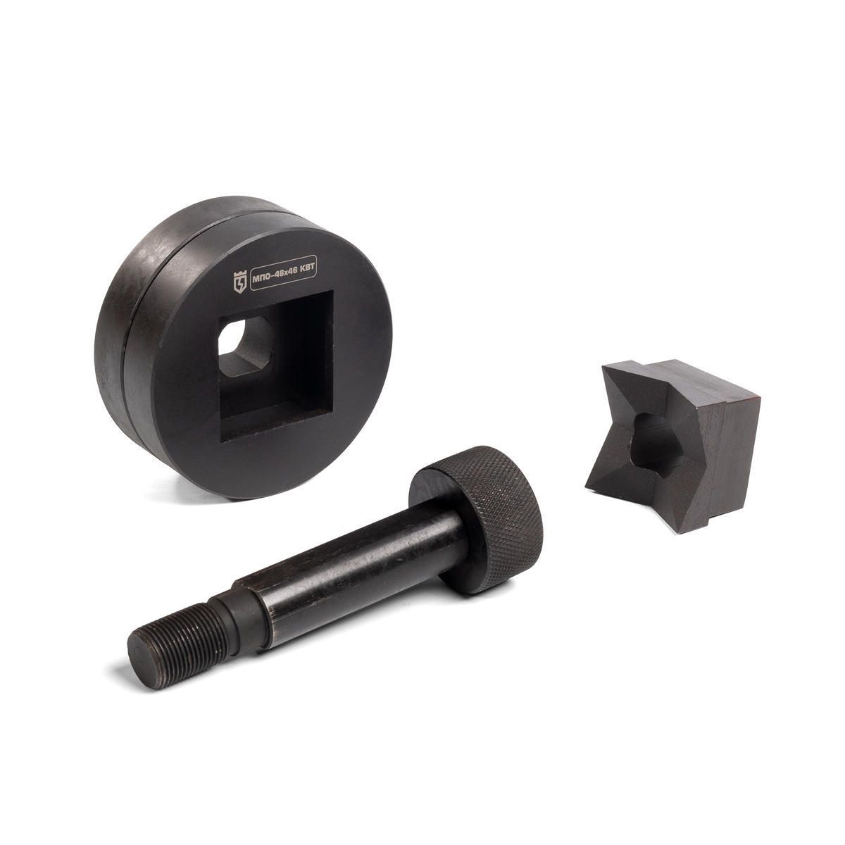 - В комплекте квадратных перфоформ: «матрица – пуансон – резьбовая шпилька – прижимная втулка»