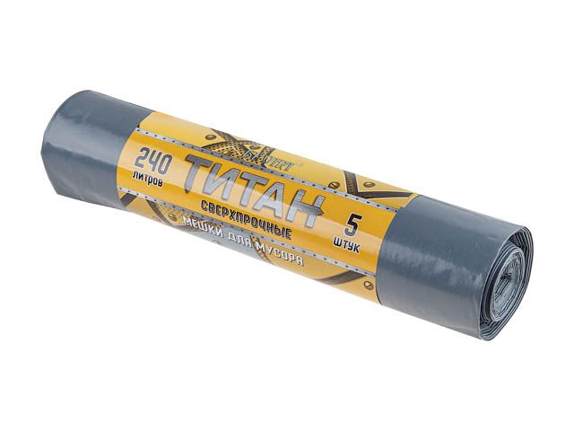 Мешки для мусора, 240 л, 5 шт, серо-черные, "Титан" (100х130см/80мкм) РОМАШКА ТТ-ВР-240/5/8/С