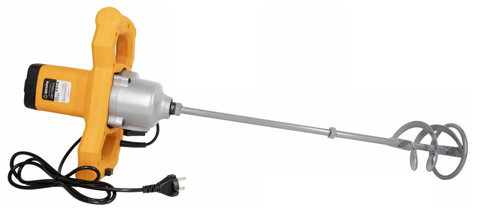 Строительный миксер Вихрь СМ-1100Э-2 - электрический инструмент, предназначенный для перемешивания различных компонентов (сухой смеси, жидкости) при получении различных строительных и отделочных материалов (бетон, штукатурка, различные клеевые смеси, краска и т.д.).