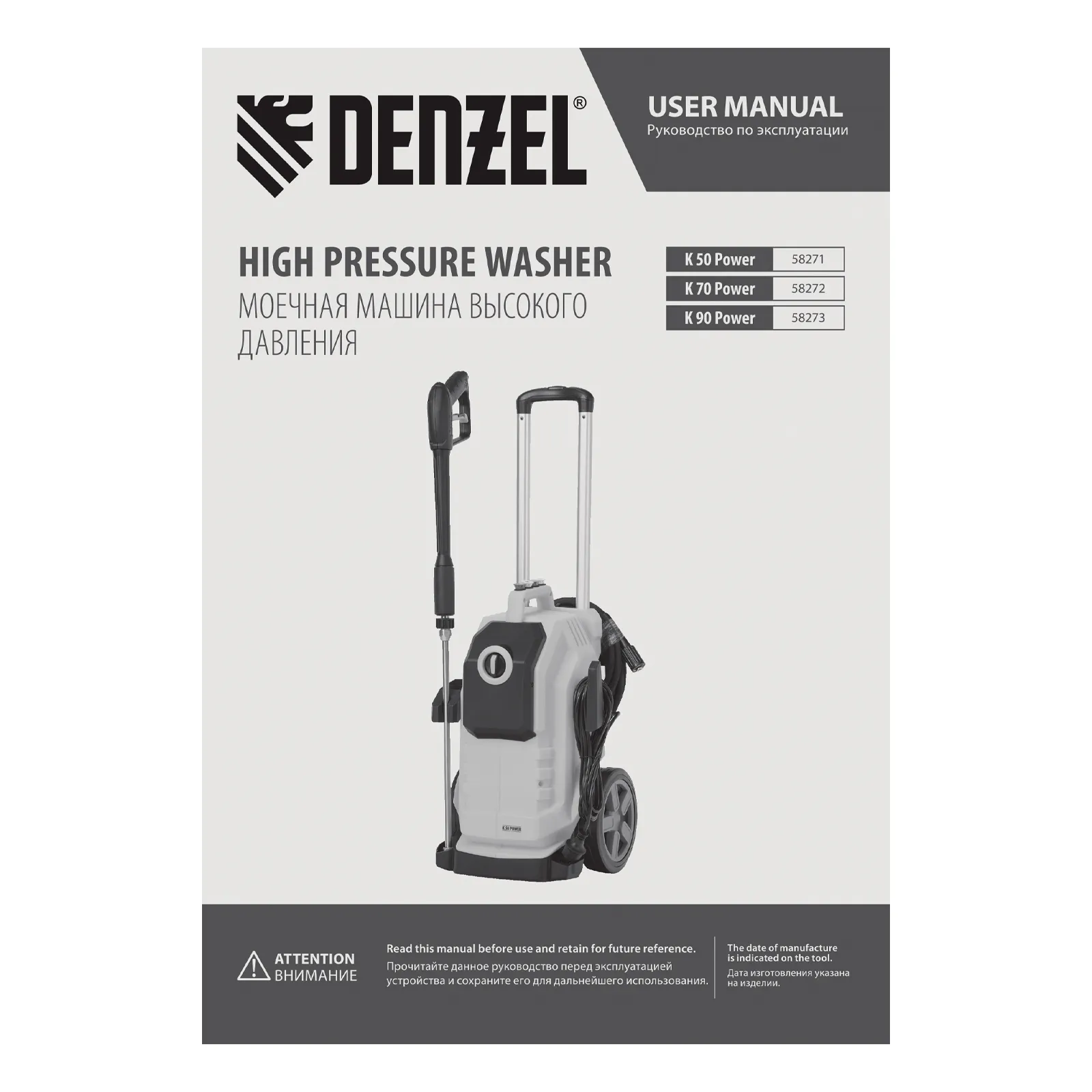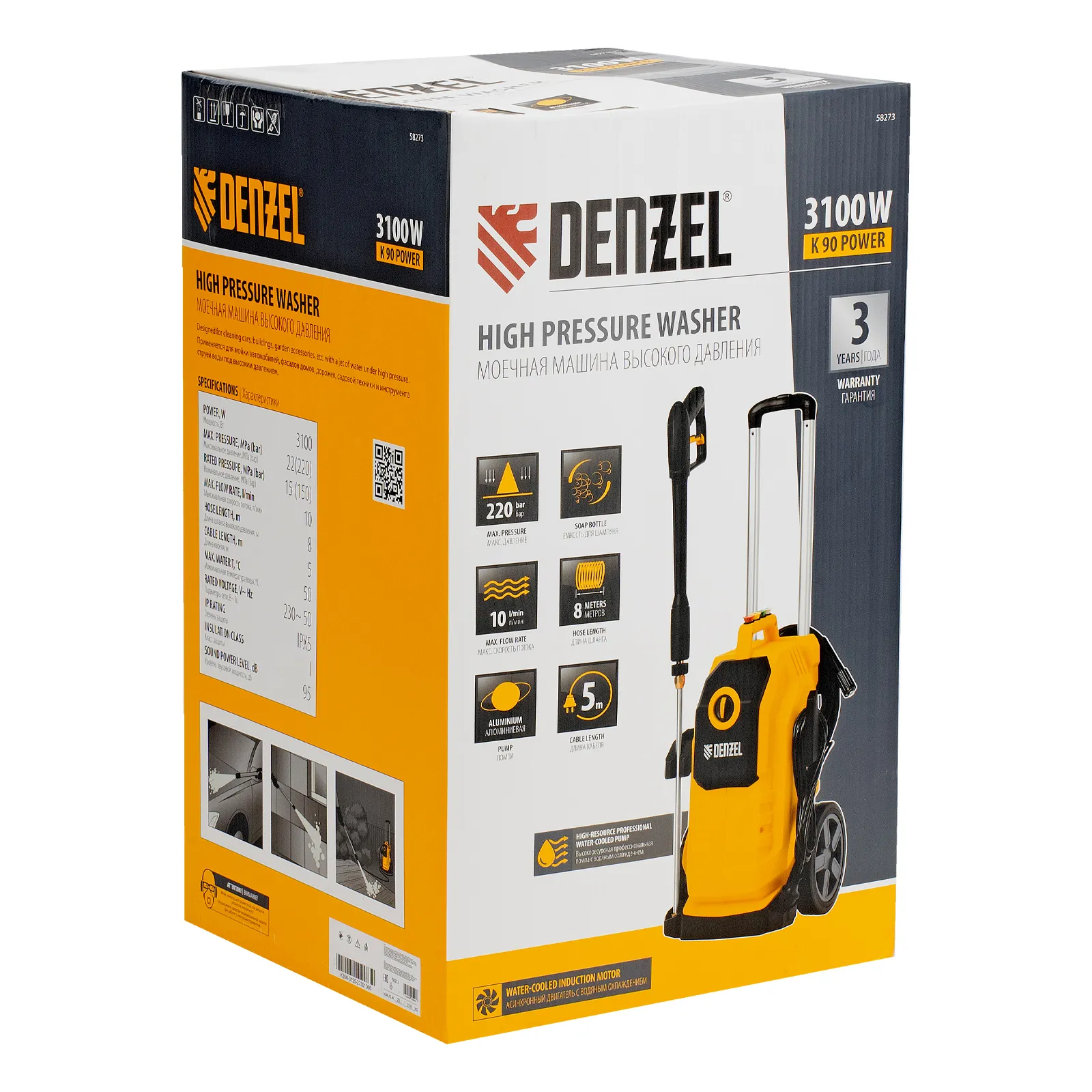 Моечная машина высокого давления K 90 Power, 3100 Вт, 220 бар, 600 л/ч, асинх. двиг. DENZEL 58273