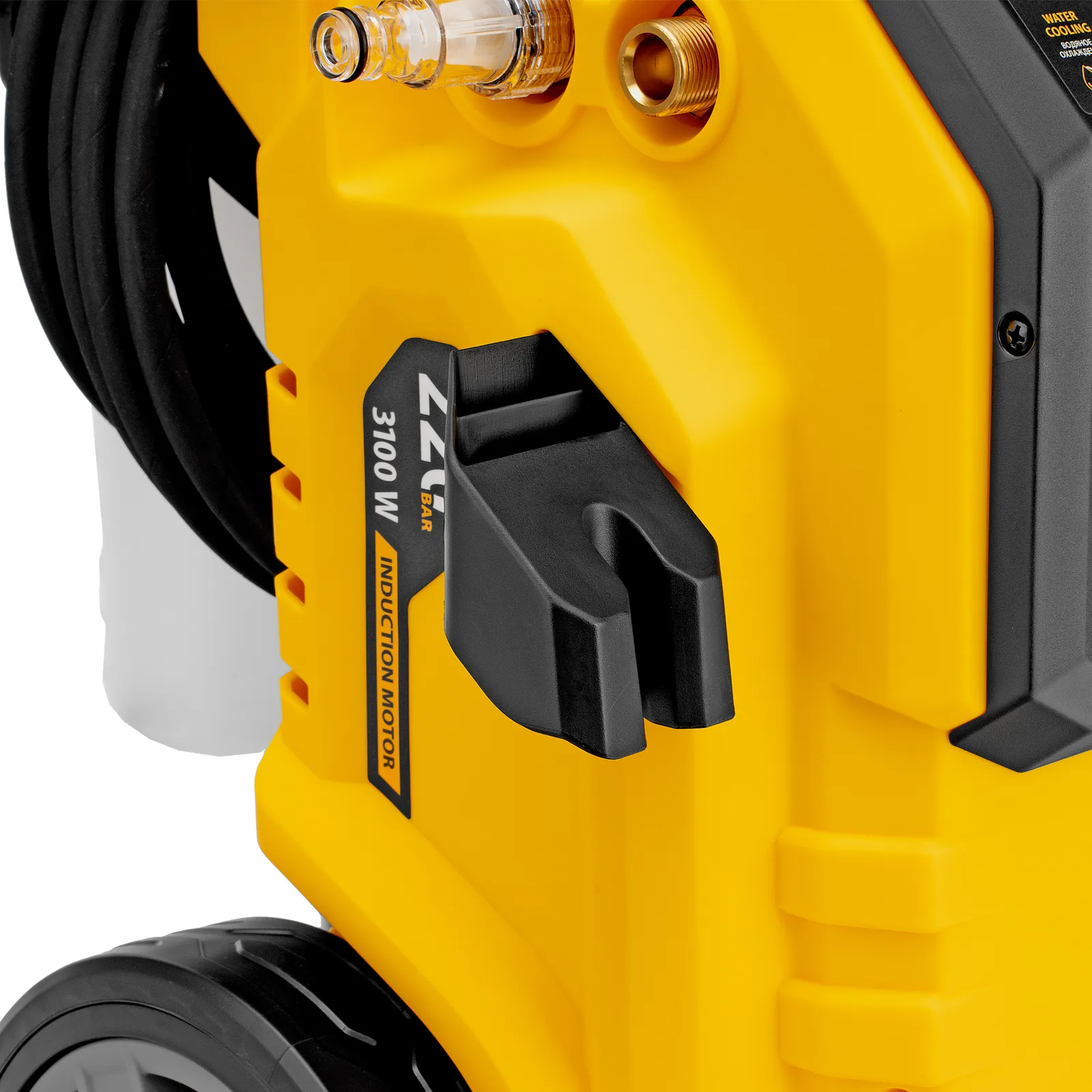 - Защита от непроизвольного запуска — для включения машины необходимо разблокировать рычаг моечного пистолета.