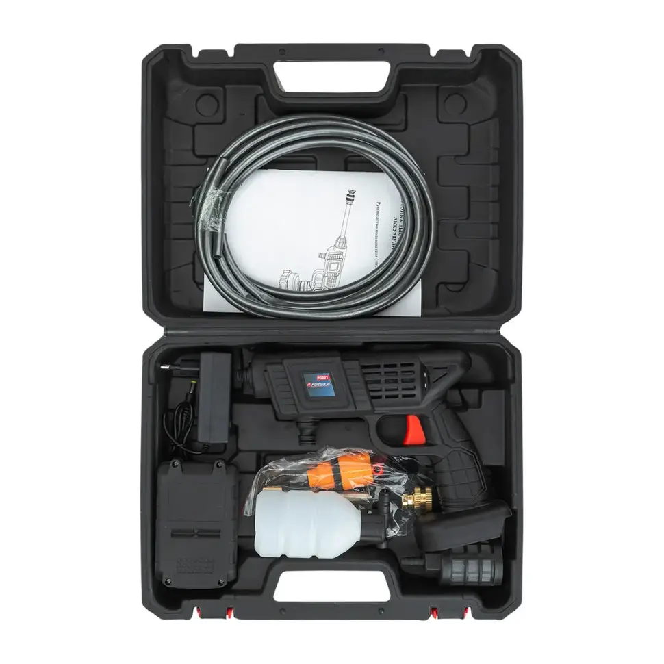 Аккумуляторная мойка высокого давления Forsage F‑PG001 — это компактное и мобильное устройство для быстрой очистки автомобиля, мотоцикла, велосипеда, садового инвентаря, мебели и других поверхностей без привязки к электросети. Работает от аккумулятора 24 В, что обеспечивает полную автономность и удобство использования на даче, в гараже или в дороге.