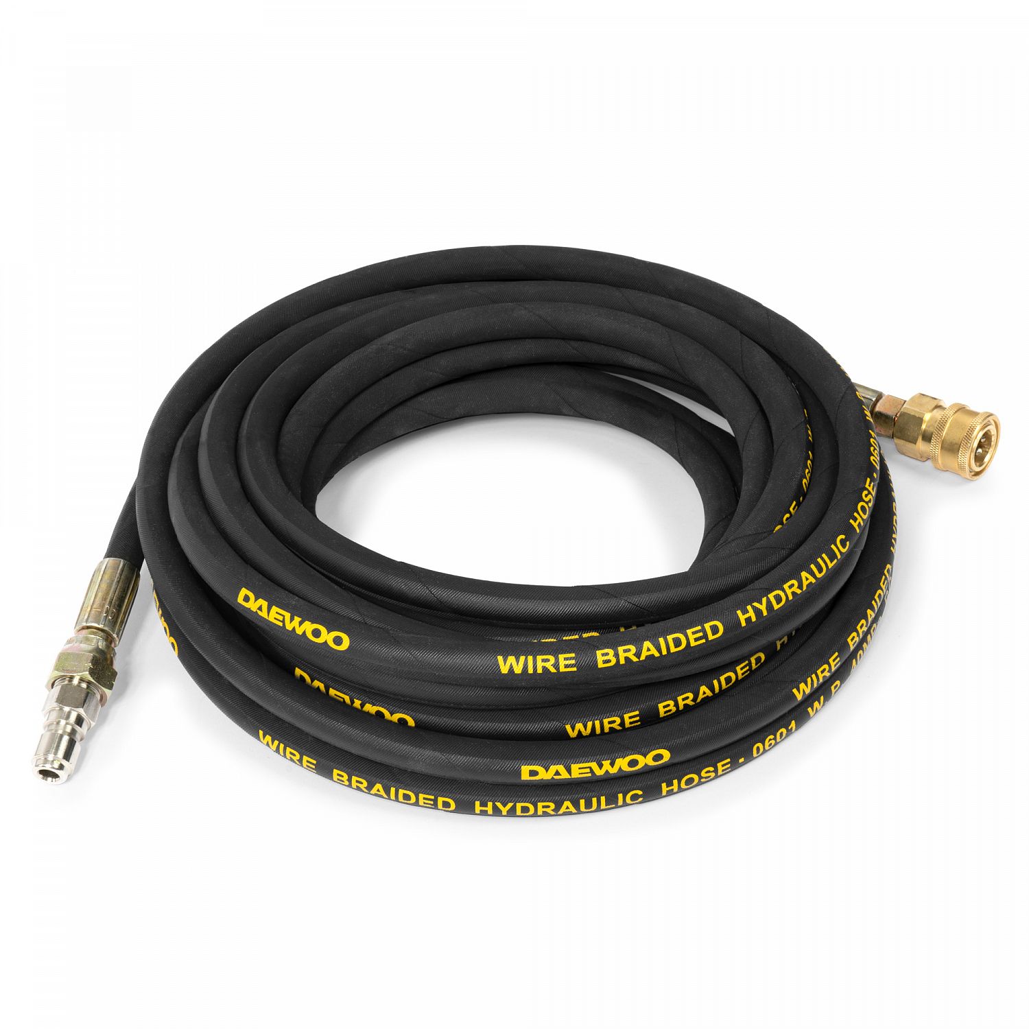 - Армированный шланг высокого давления. Мягкий армированный шланг высокого давления длиной 10 метров имеет запас прочности, значительно превосходящий мощность насоса, благодаря чему он с легкостью выдерживает пиковые нагрузки в моменты запуска и остановки двигателя, а также обладает устойчивостью к внешнему механическому воздействию.
