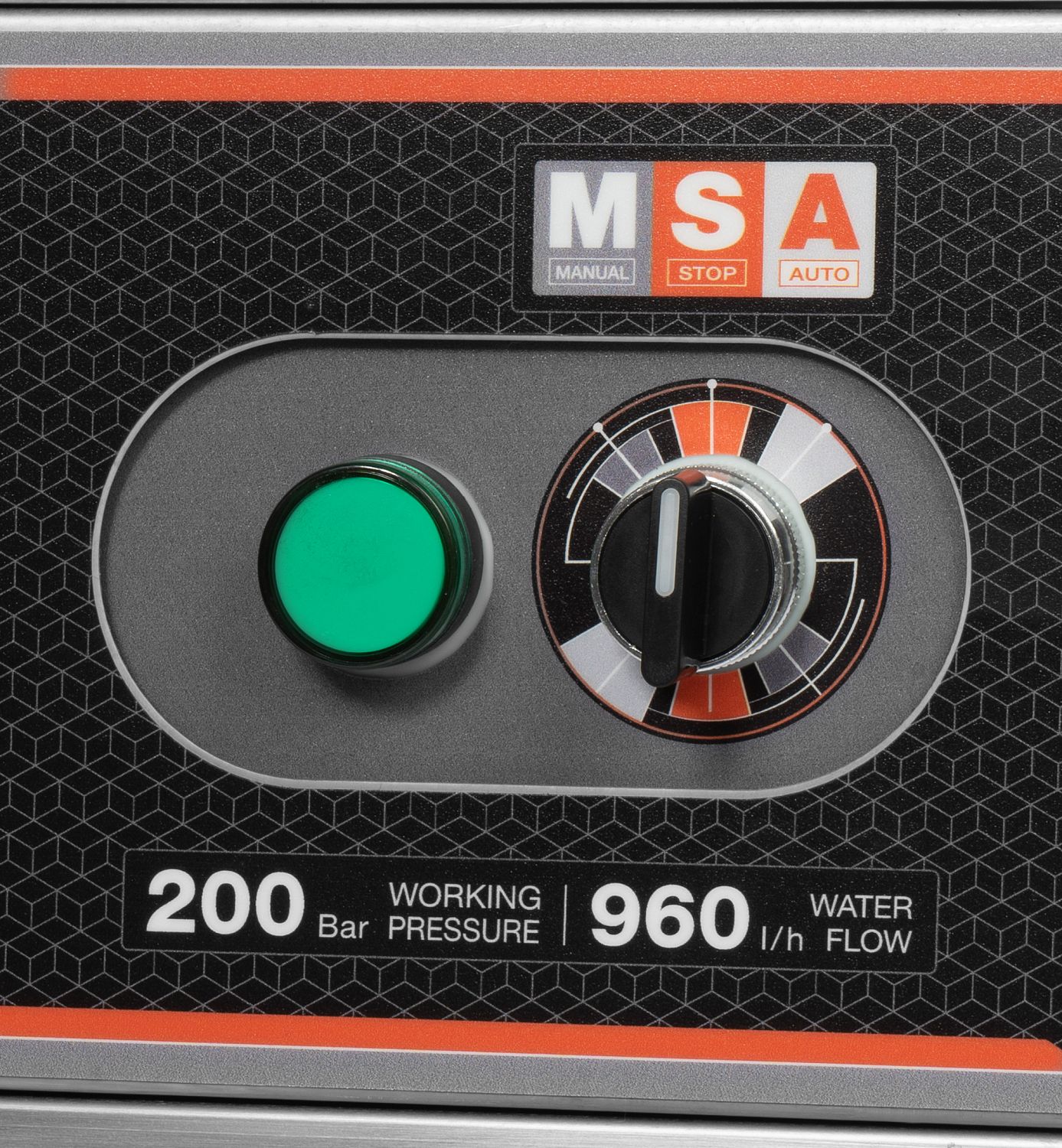 - Автоматический режим. Система автоматики «TOTAL STOP» включает и останавливает электродвигатель, когда нажимается или отпускается рычаг на ручке пистолета. Данная система продлевает срок службы помпы и всех узлов, находящихся под высоким давлением.