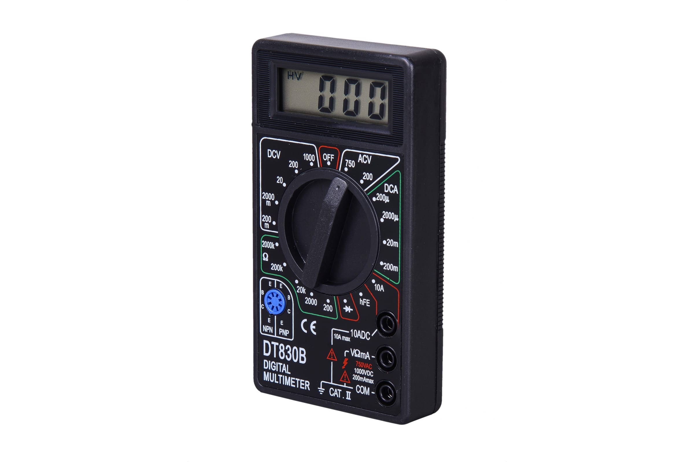 Мультиметр DT830B - компактный, износостойкий, 3 1/2 - разрядный мультиметр. Предназначен для измерения постоянного и переменного напряжения, постоянного и переменного тока, сопротивления, емкости, проверки диодов, транзисторов. Метод измерений - АЦП двойного интегрирования с автоматической коррекцией нуля, автоматическим определением полярности и индикацией перегрузки. Полная защита от перегрузок. Предназначен для применения в полевых условиях, лабораториях, мастерских и домашнем хозяйстве.