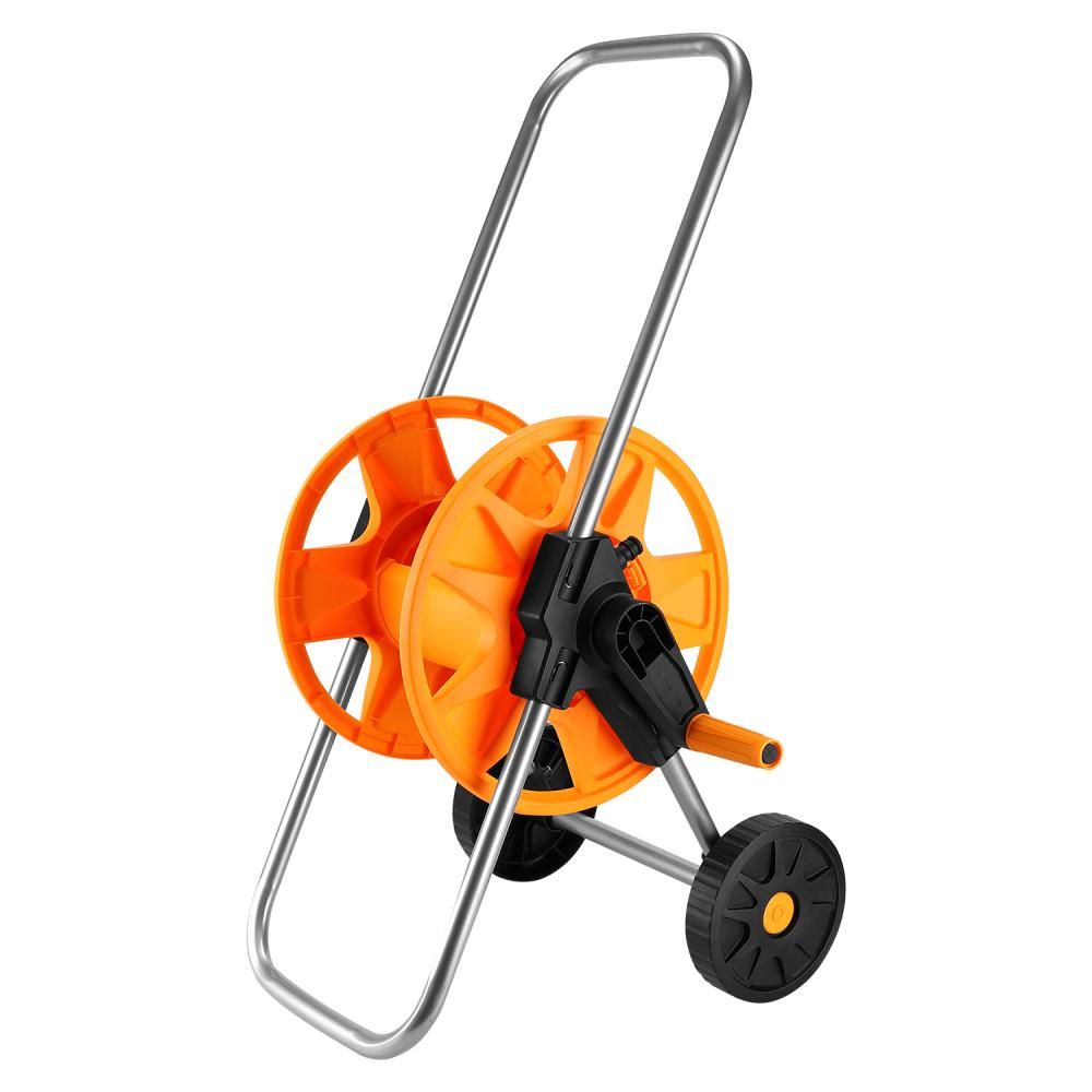 - Шланг 2 м - 1 шт. Катушка - 1 шт (в разобранном виде: колесо катушки - 2шт, перекладина катушки - 2шт, пряжка колеса - 2шт, держатель оси - 2шт, колесо - 2шт, валоповоротная рукоятка - 1шт, колено для подсоединения шланга - 1шт, боковая соединительная опора - 2шт, металлический винт - 10шт, распорка - 2шт, металлическая U-образная опора - 1шт, ось для колёс - 1шт, металлическая направляющая рукоятка - 1шт).