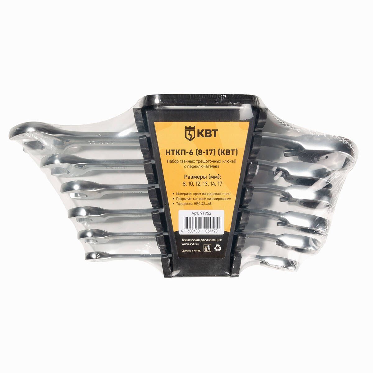 Набор гаечных комбинированных трещоточных ключей с переключателем реверса НТКП-6 (8-17) серия КВТ-PR КВТ 91952
