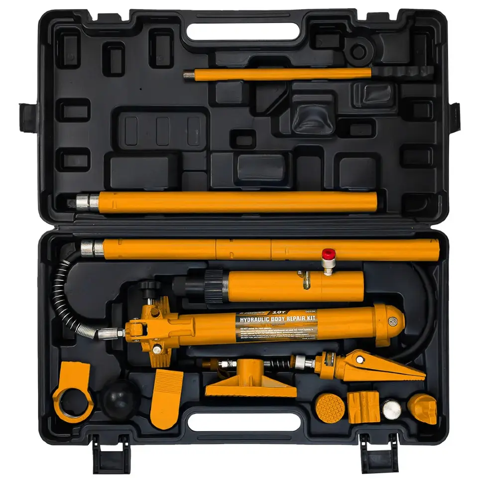 Набор гидравлического оборудования для кузовных работ FORSTIME FT‑0010K (усилие 10 т) — универсальный комплект для правки кузова, устранения деформаций, растяжки, подъёма и выпрямления конструкций. Применяется в автосервисах, СТО, ремонтных мастерских и при выездных работах.