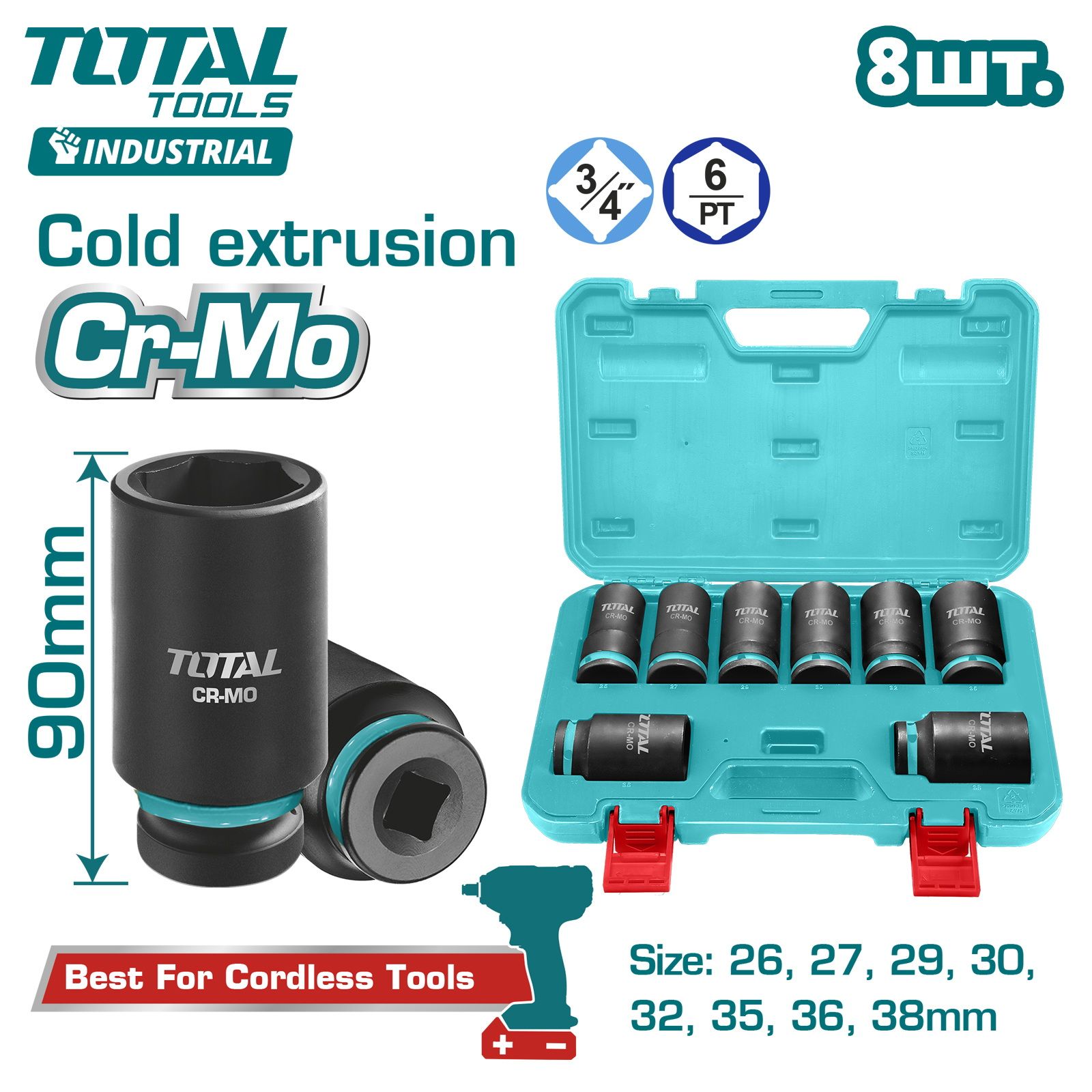 Набор головок 3/4 " TOTAL THKISD34082L (8шт)