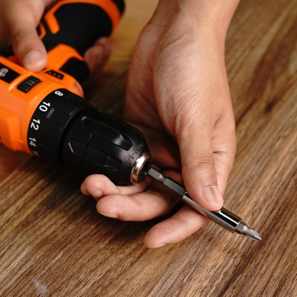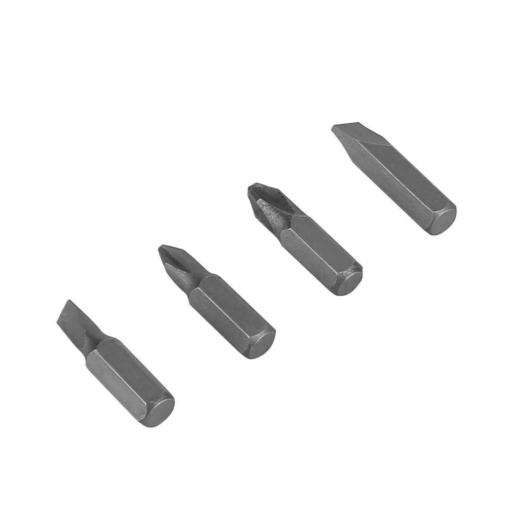 - 4 шт биты 25мм: PH1, PH2, SL1/4, SL3/16