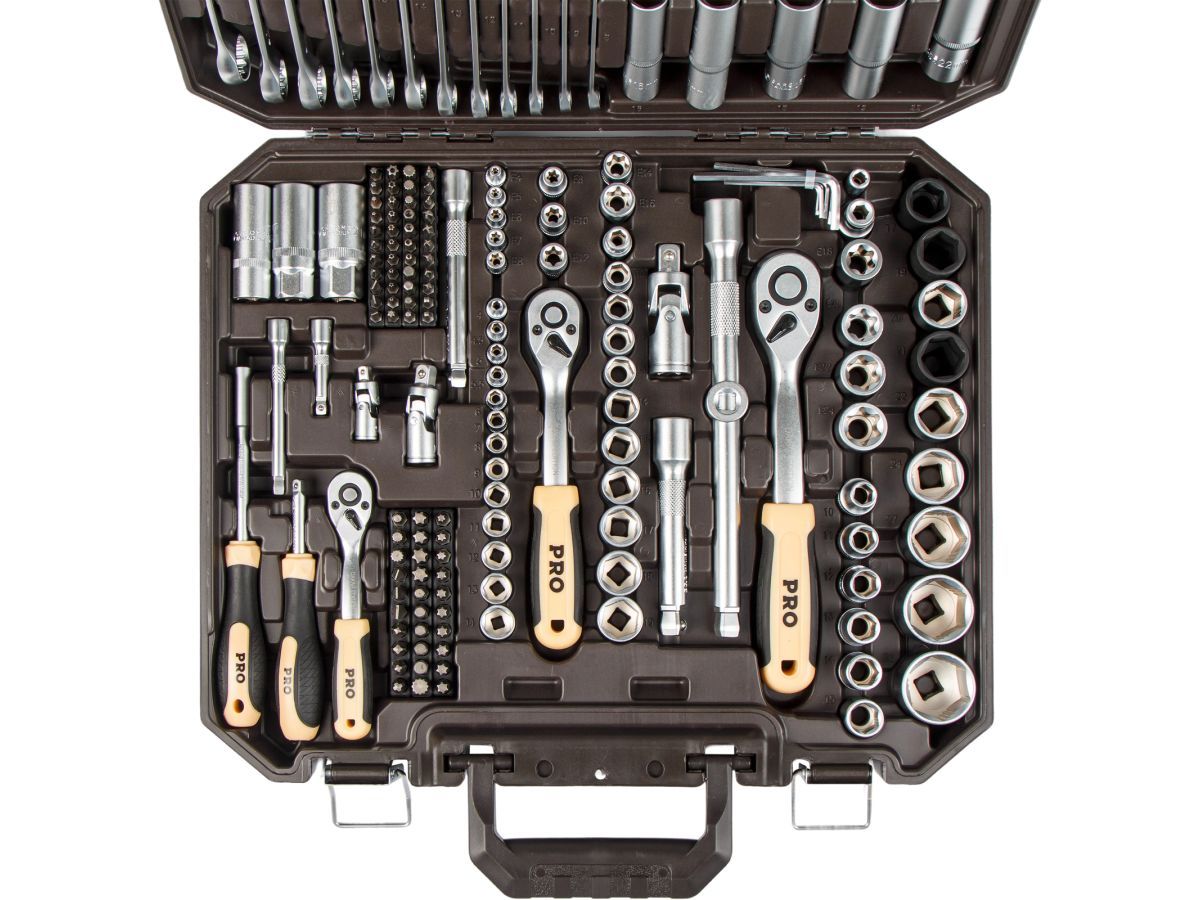 Профессиональный многофункциональный набор предназначен для ремонта и технического обслуживания автомобилей; Бессрочная гарантия на головки, ключи шестигранные и комбинированные, воротки, удлинители (подробная информация в гарантийном талоне с каждым набором).