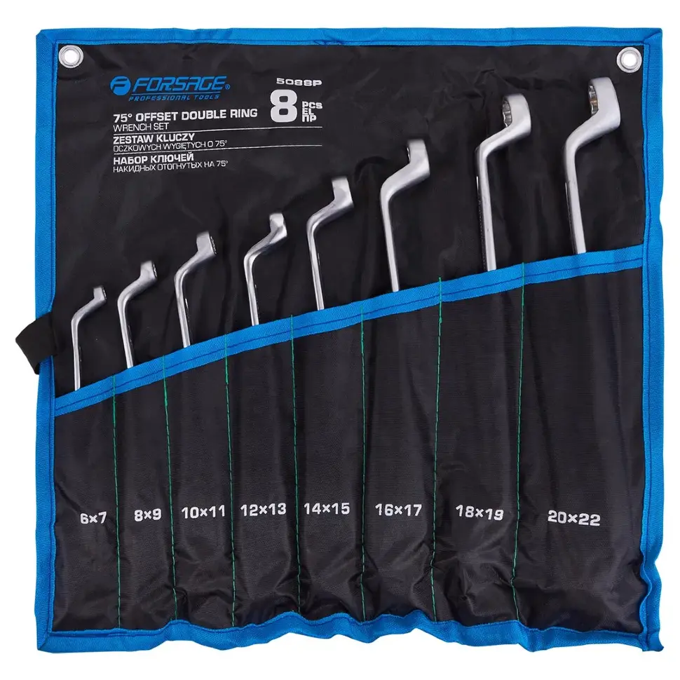 - 9 комбинированных ключей 8, 10, 11, 12, 13, 14, 17, 19, 22 мм.