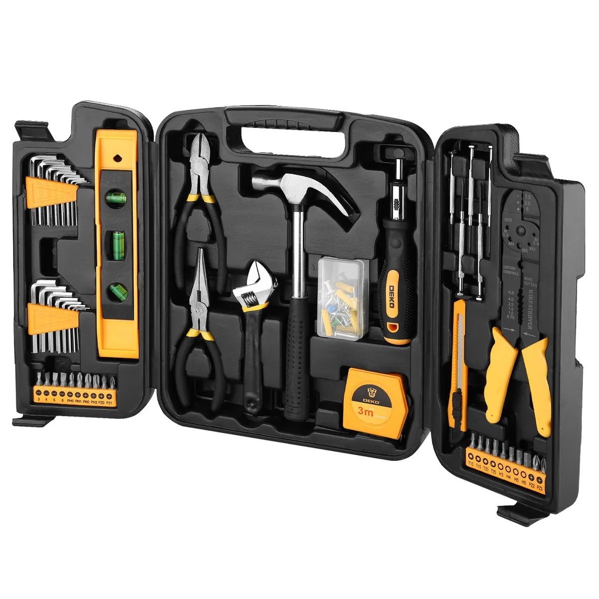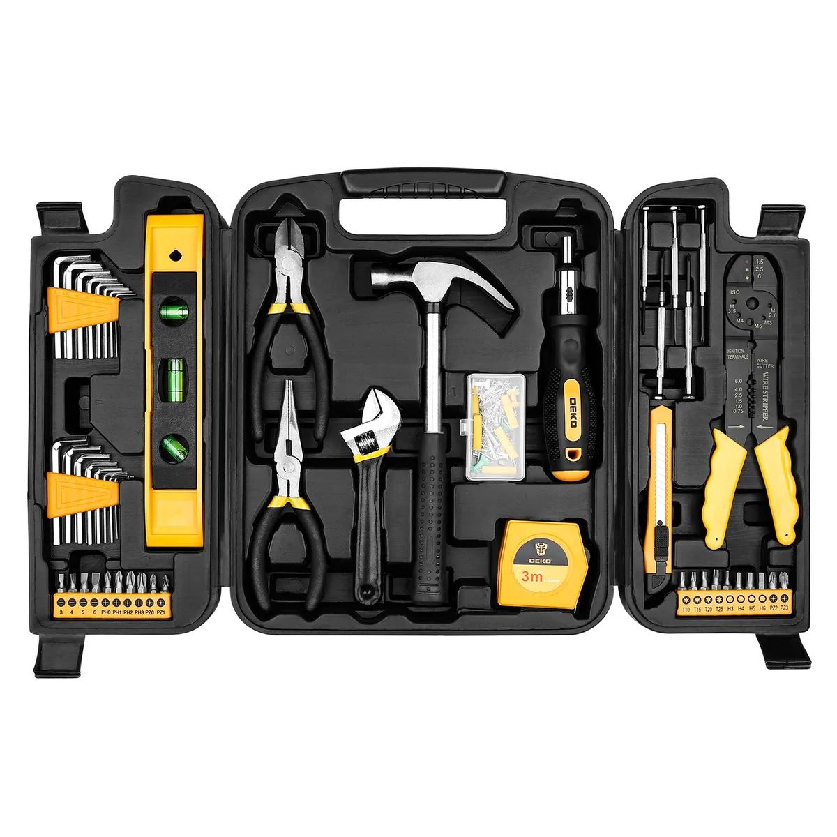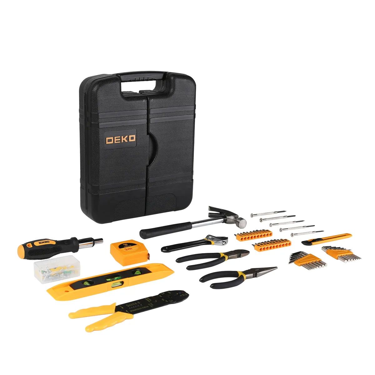 Все предметы набора инструмента для дома в чемодане Deko DKMT130 (130 предметов) изготовлены из высококачественной хромованадиевой стали с хромированным покрытием. Набор комплектуется прочным кейсом для легкой переноски и удобного использования.