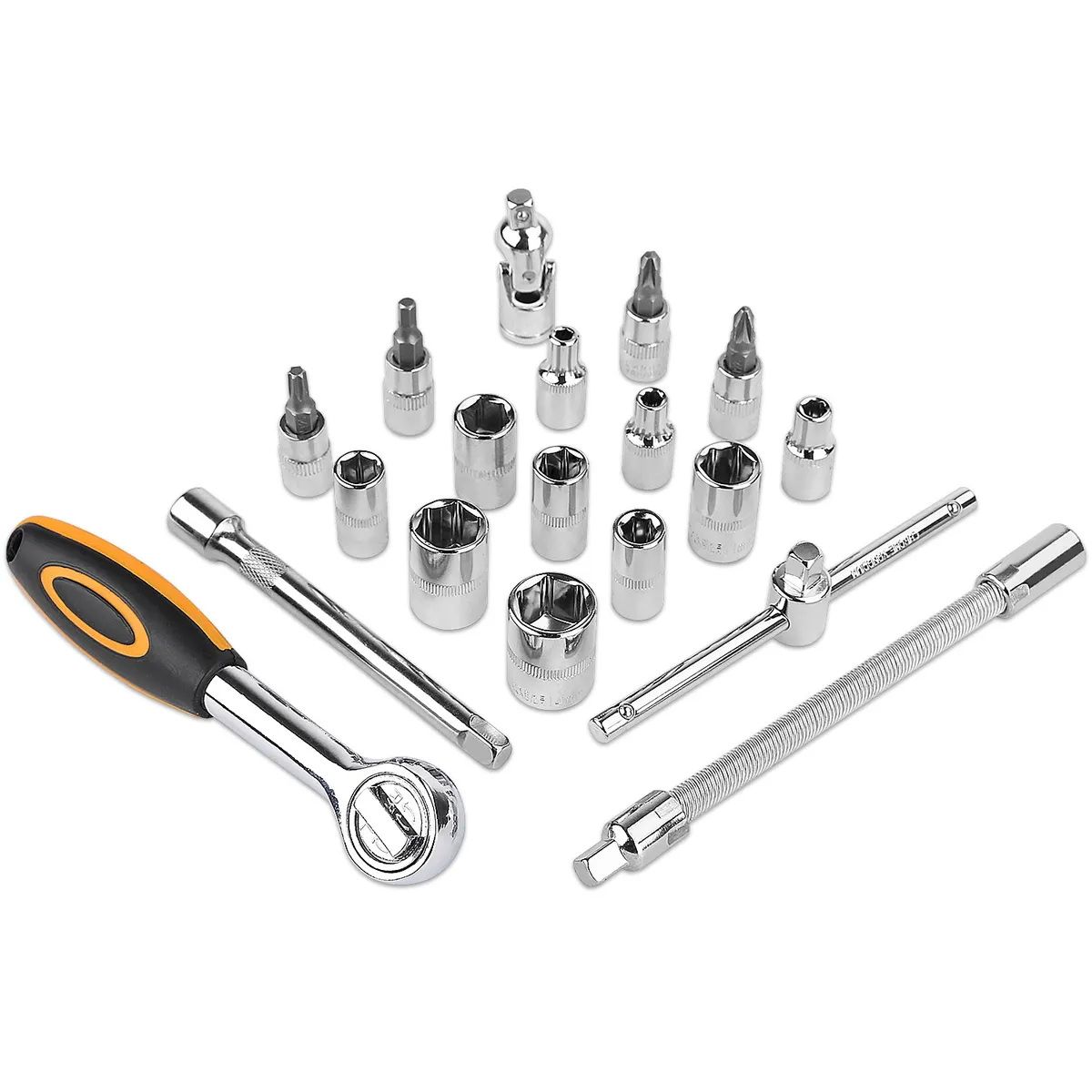- Всё необходимое - набор включает в себя множество самых популярных насадок, трещотки, гаечные ключи, шестигранный ключ, биты, универсальный шарнир и т.д.