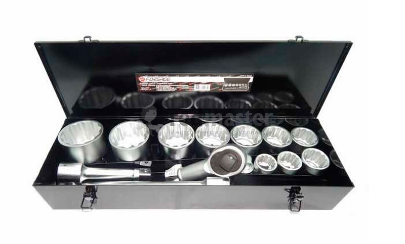 Набор инструментов 1" (12 гр.)(36,41,46,50,55,60,65,70,75,80 мм) Forsage 8141-6. В комплекте 15 предметов