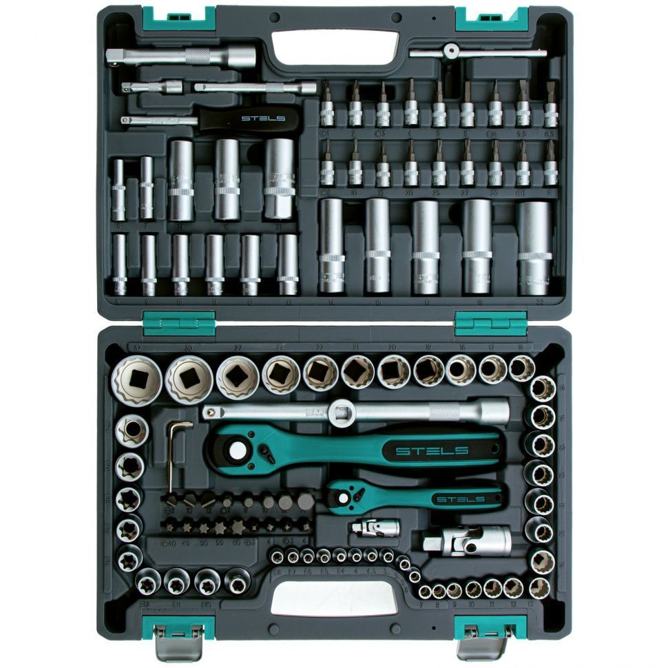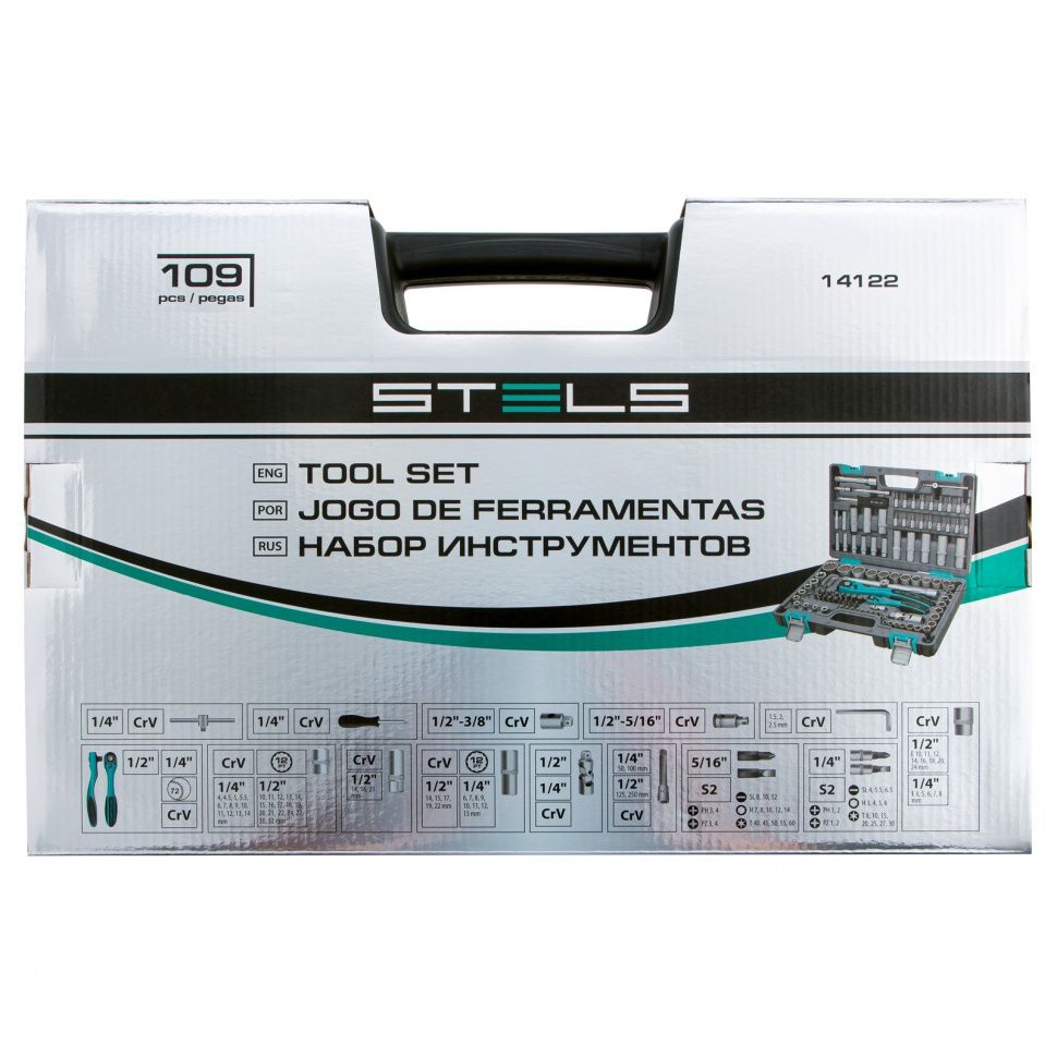 Набор инструментов 1/2", 1/4", CrV, 12 гранные головки, пластиковый кейс, 109 предмета Stels 14122