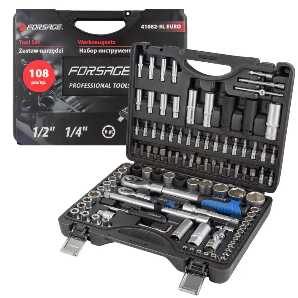 Набор инструментов 108пр.1/4''&1/2''(6гр.)(4-32мм) Forsage F-41082-5LEuro