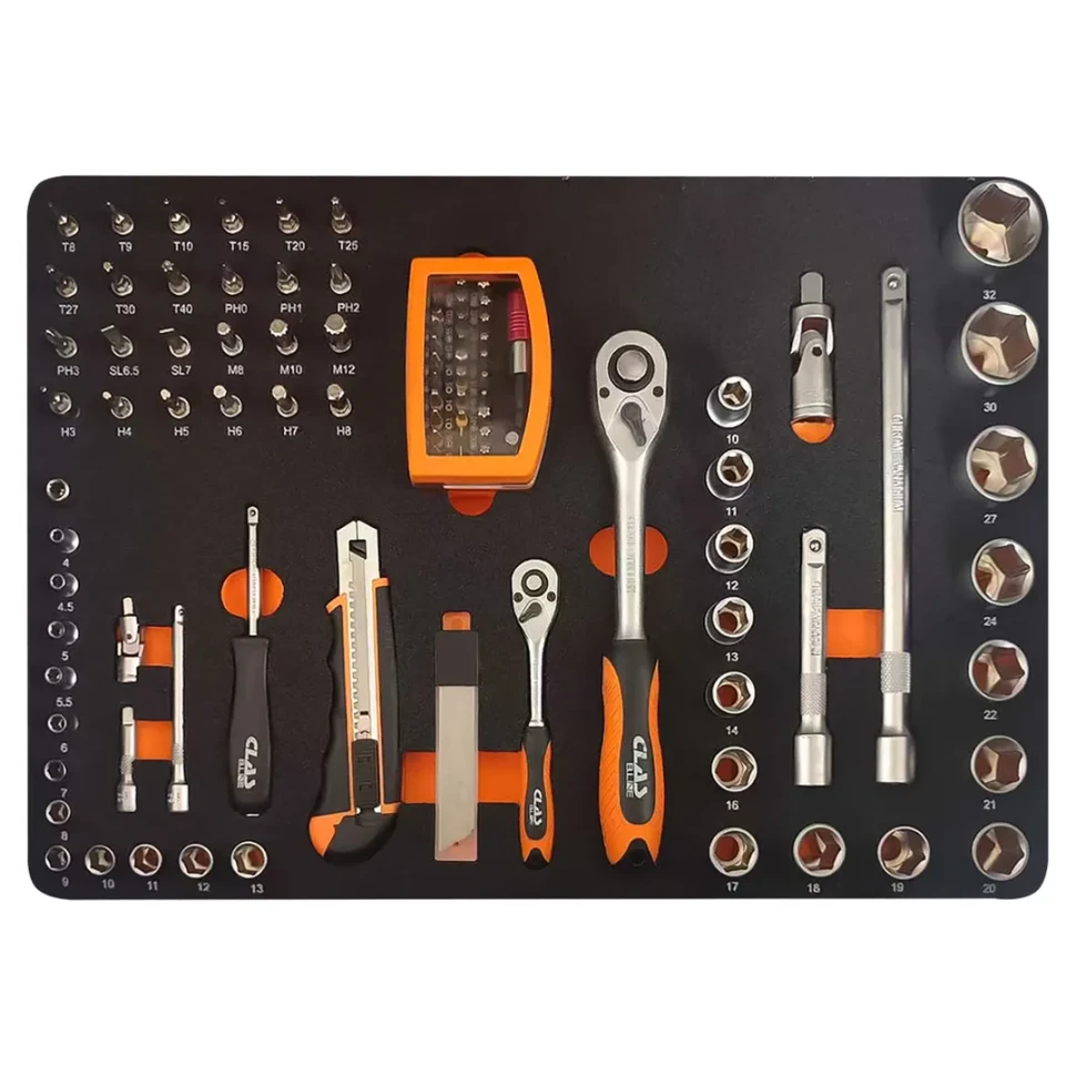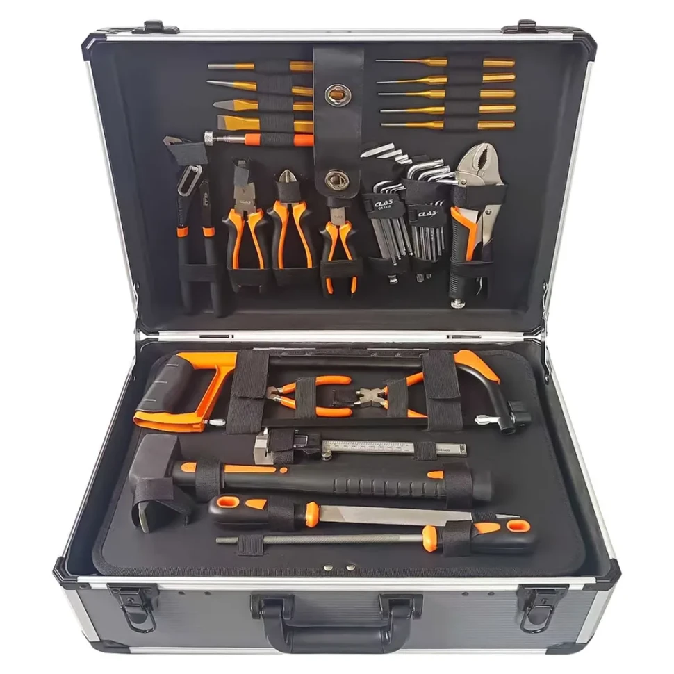 Профессиональный набор инструментов из 166 предметов в прочном пластиковом кейсе, предназначенный для комплексных монтажных, ремонтных и сервисных работ. Набор включает широкий спектр ручного инструмента: пассатижи различных типов (телефонные, длинногубцы, комбинированные, с фиксатором, для стопорных колец), молоток 1 кг, кусачки, зубила, ножовку по металлу, напильники, обжимной инструмент, выколотки размером от 2 до 6 мм. Измерительные инструменты представлены штангенциркулем с диапазоном 0-150 мм, тестером напряжения и телескопическим магнитом. Ключевой составляющей являются комплекты торцевых головок на 1/2" и 1/4" привод: трещотки, карданные шарниры, удлинители, адаптеры, а также полный набор головок размером от 4 до 46 мм, включая стандартные метрические размеры 10, 11, 12, 13, 14, 16, 17, 18, 19, 20, 21, 22, 24, 27, 30, 32 мм и увеличенные размеры с шагом 2 мм от 8 до 46 мм. Набор ключей содержит рожковые ключи от 7 до 19 мм, шестигранные ключи от 1.5 до 10 мм, ключи Torx от T10 до T50. Дополнительно вк