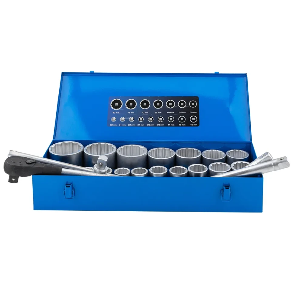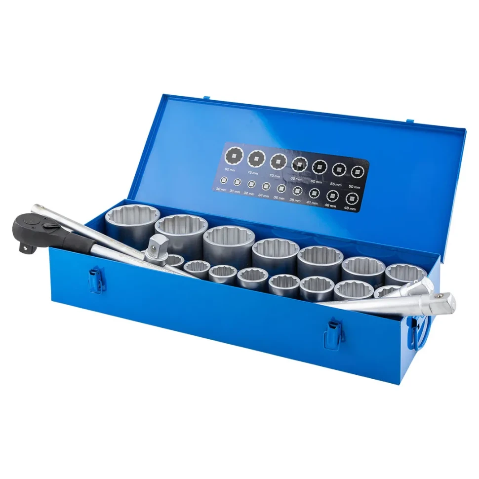 Набор обеспечивает надёжное и безопасное взаимодействие с гайками, болтами и фланцевыми соединениями большого диаметра в условиях грузового автосервиса, при монтаже металлоконструкций, обслуживании промышленного оборудования, сельскохозяйственной и специальной техники.