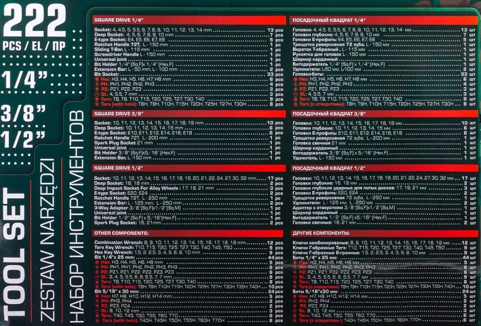 Набор инструментов 222пр. 1/4" 3/8" 1/2" 6гр RockFORCE LIGHT RF LIGHT-42222-5
