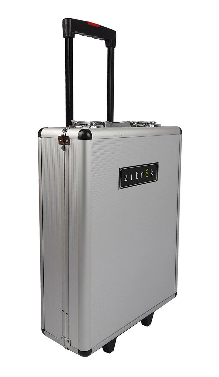 Набор поставляется в специальном алюминиевом кейсе, внутри инструменты расположены в выделенных зонах. Кейс оснащается колесиками и выдвижной рукояткой, что облегчает его перемещение.