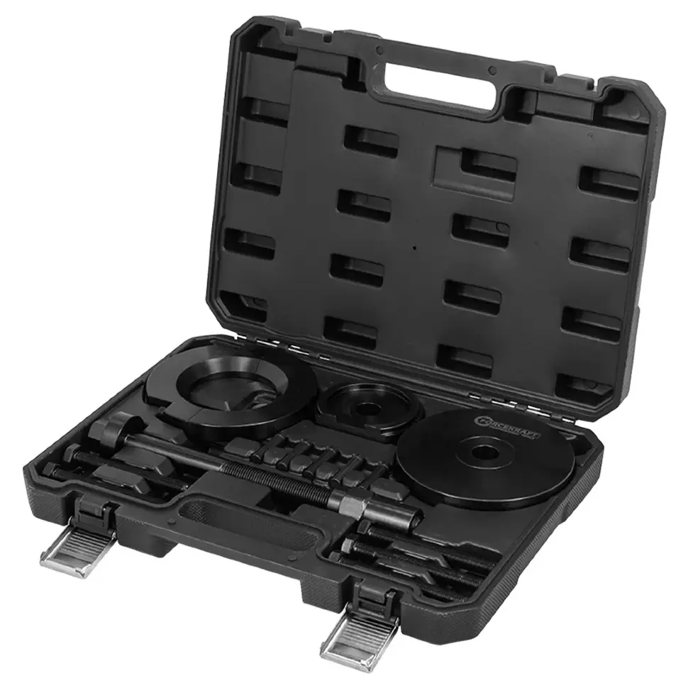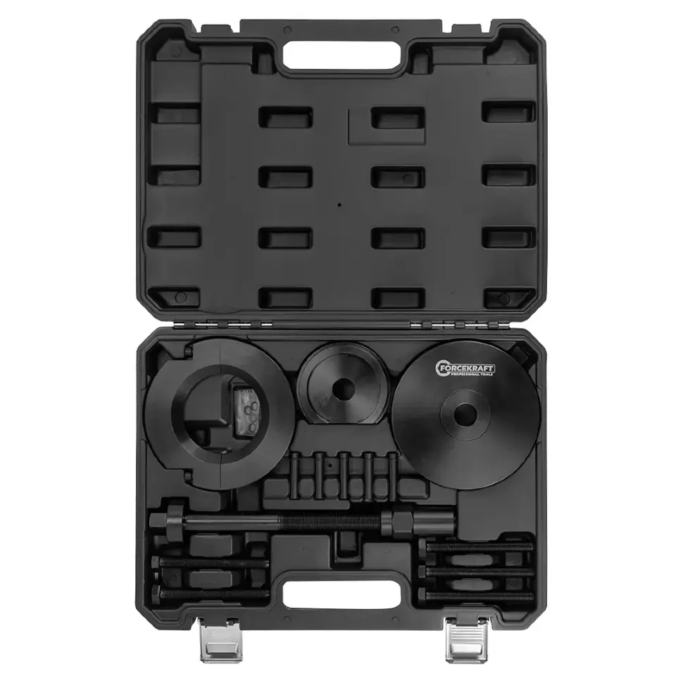 Набор инструментов для замены ступичных подшипников 28 пр. FORCEKRAFT FK‑913T2M — универсальный комплект для демонтажа и установки ступичных подшипников без повреждения деталей подвески.