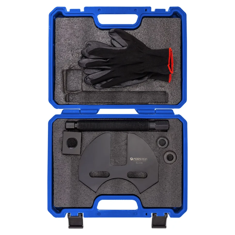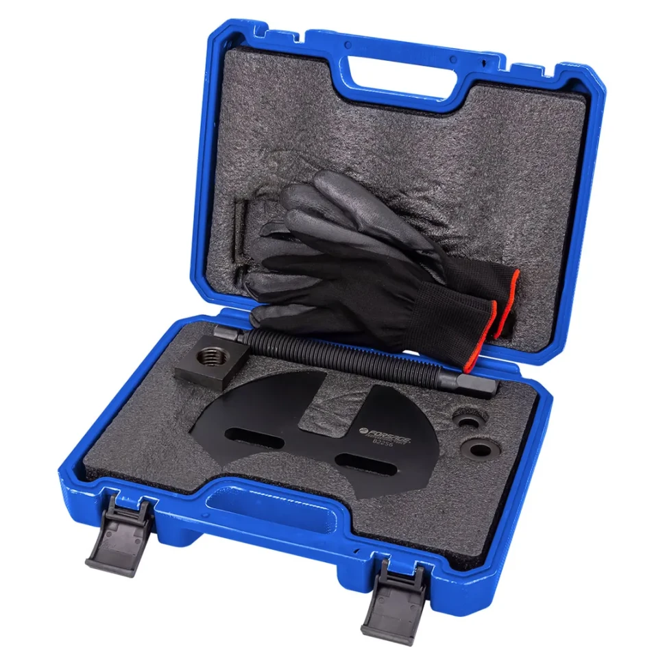 Набор для снятия ступиц Forsage, модель B2256 — это профессиональный комплект инструментов для демонтажа ступиц колес в условиях автосервисов и ремонтных мастерских. В набор входят С-образная пластина (съемник), резьбовой стержень с гайкой и шайбами, а также пара защитных нитриловых перчаток для безопасной работы. Ударопрочная конструкция и усиленная резьба обеспечивают надежность при демонтаже даже самых сложных соединений. Оборудование предназначено для использования исключительно обученным персоналом. Все инструменты проходят контроль качества и соответствуют промышленным стандартам.