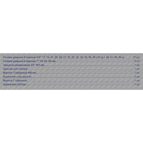 Набор инструментов ударных 26пр, 3/4" (6гр: 17-50мм, 12гр: 36мм) 1" (6гр: 55, 60, 65мм) CrMo "H-D"