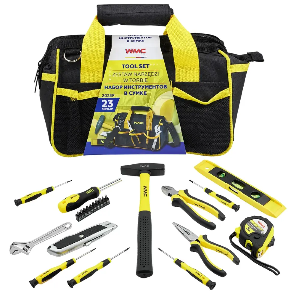 Набор инструментов в сумке WMC TOOLS WMC‑2023P (23 предмета) — универсальный комплект для бытового и профессионального применения. Подходит для мелкого ремонта, сборки мебели, обслуживания техники и выполнения монтажно‑слесарных работ. Компактная сумка‑органайзер обеспечивает удобное хранение и транспортировку.