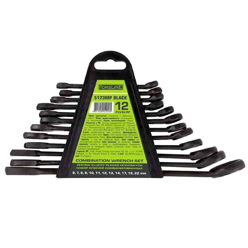 Набор ключей комбинированных 12пр.(6-14, 17, 19, 22мм) в пласт. держателе ForsLine FL-5123MP BLACK