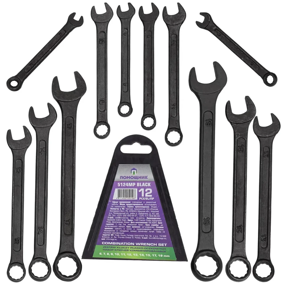 Набор ключей комбинированных 12пр. Помощник 5124MP Black