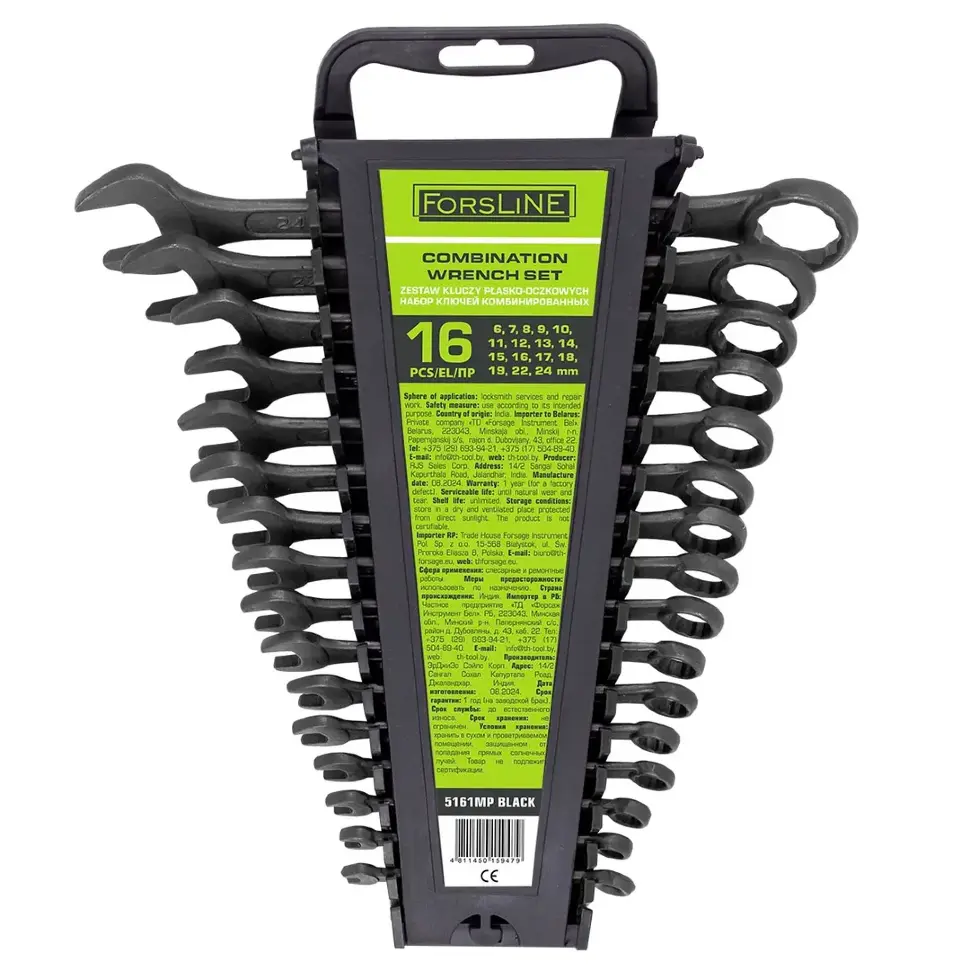 Набор ключей комбинированных 16 пр (6-19,22,24мм), в пластиковом держателе ForsLine FL-5161MP BLACK