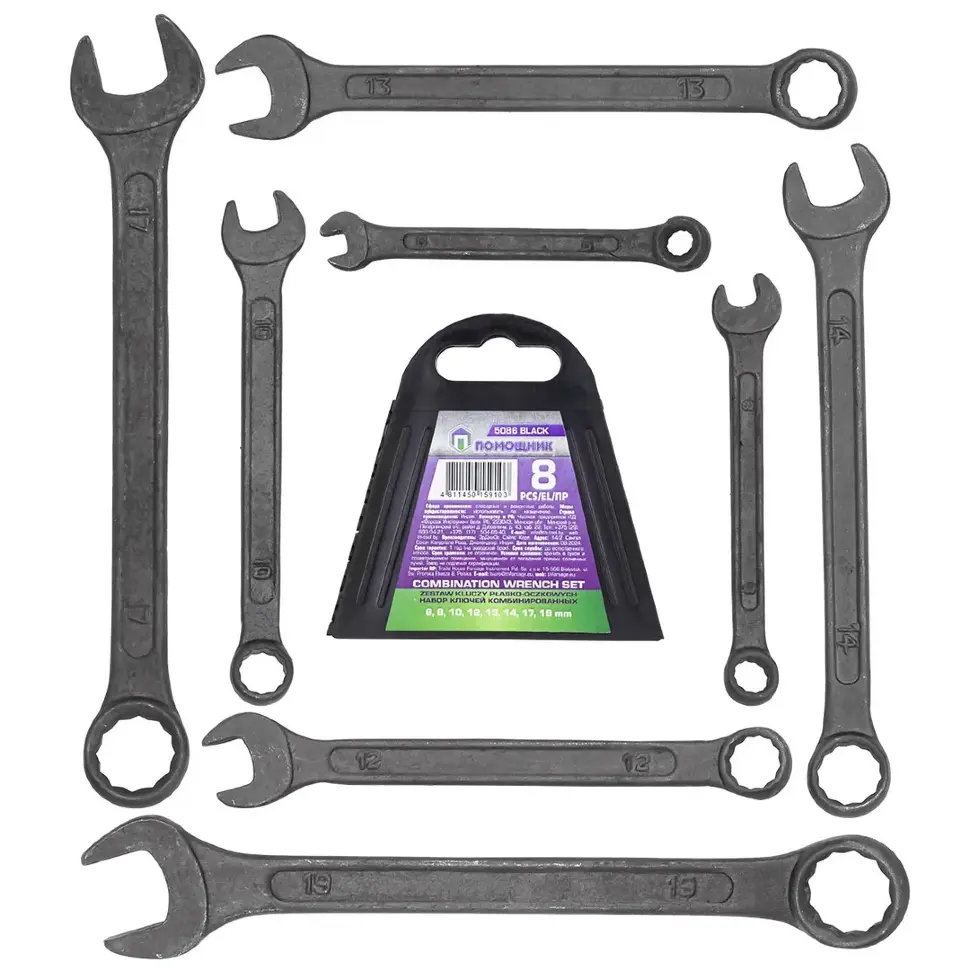 Набор ключей комбинированных 8пр.(6, 8, 10, 12-14, 17, 19мм)в пластиковом держателе Помощник 5086 BLACK