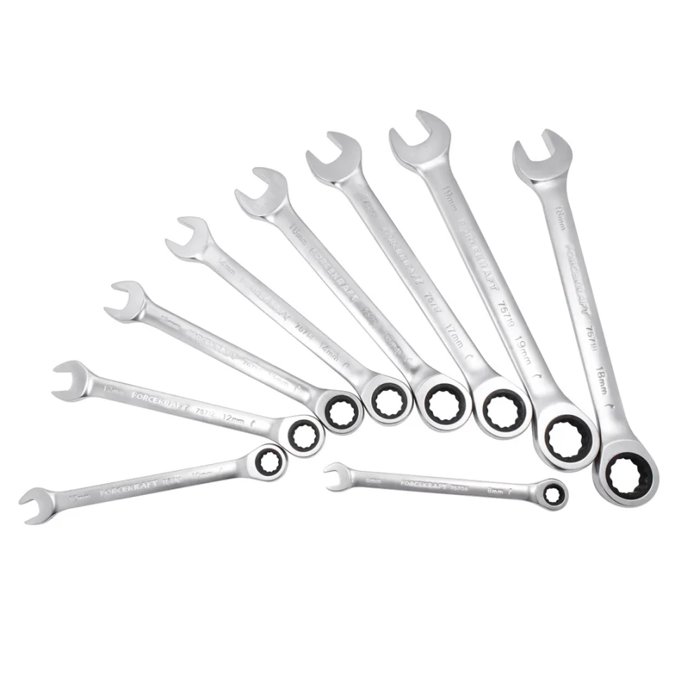 Набор ключей комбинированных трещоточных, 9пр. (8,10,12,13,14,16,17,18,19мм) в пластиковом держателе FORCEKRAFT FK-51092
