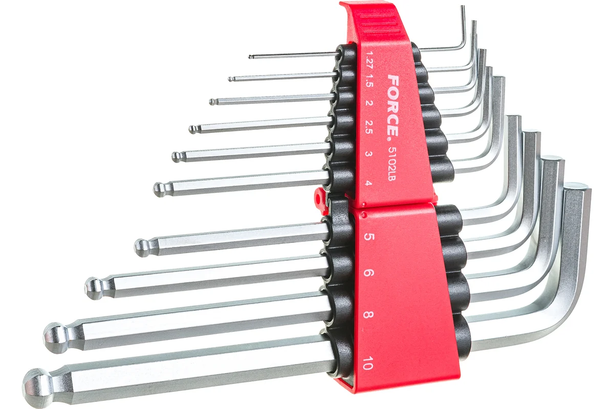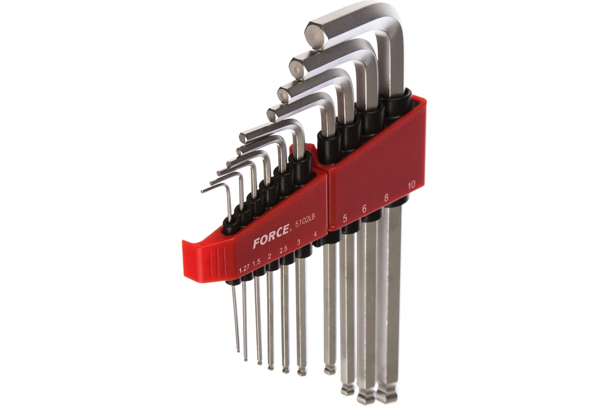 Набор ключей шестигранных 1.27-10мм, 10пр. длинных с шаром Force 5102LB