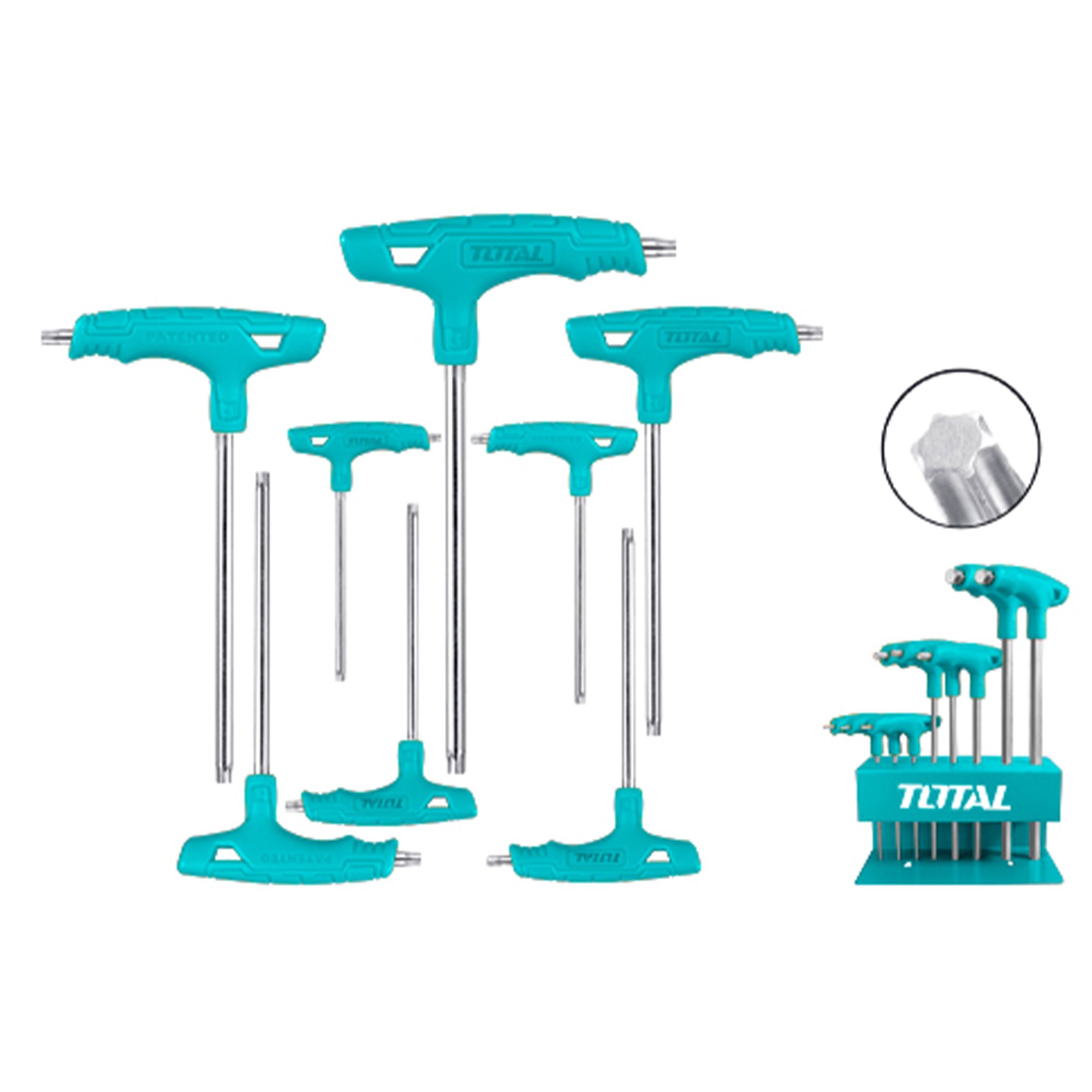- Набор профессиональных Torx ключей (звездочки), 8 шт. TOTAL THHW80836 - это набор ручных инструментов для монтажа или демонтажа винтов с цилиндрической головкой.