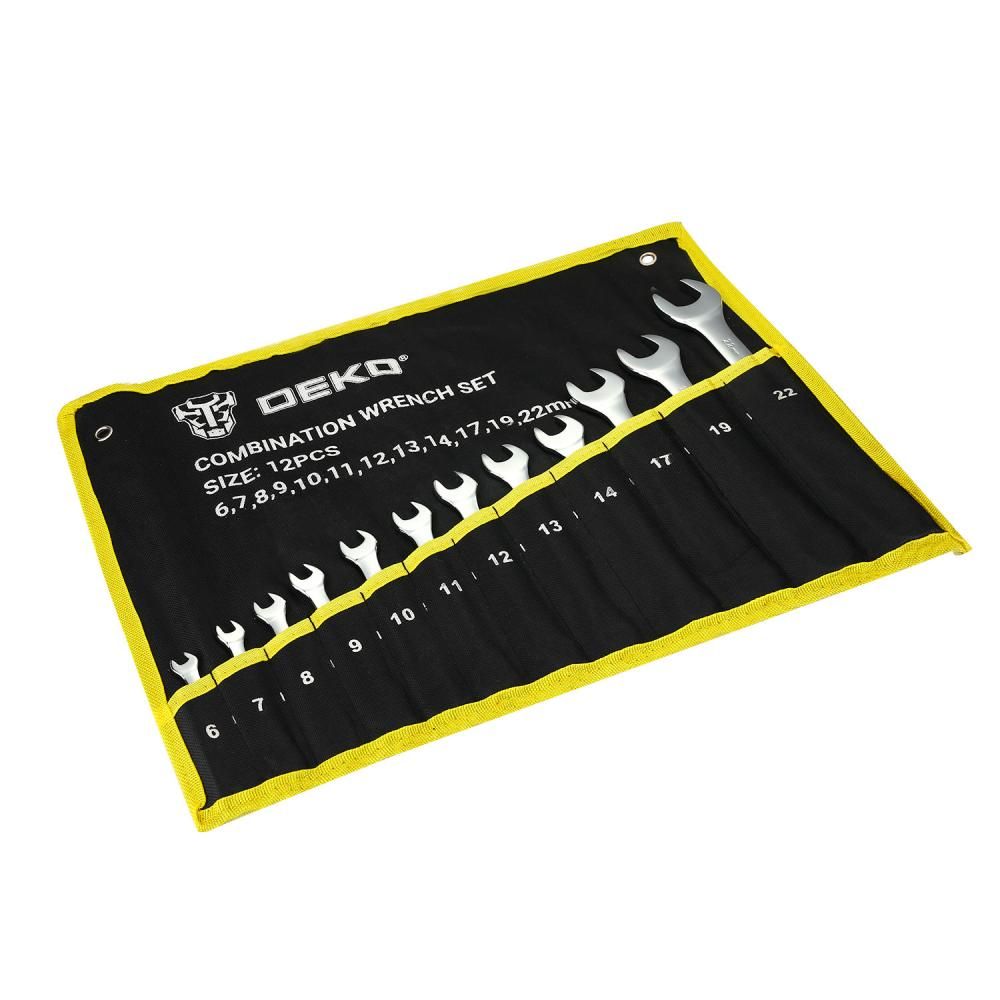 - Набор комбинированных гаечных ключей DEKO DKHT12-1 в сумке (12 предметов) используется в автомастерских, в гараже, на ремонтно-строительных площадках для обслуживания крепежа.