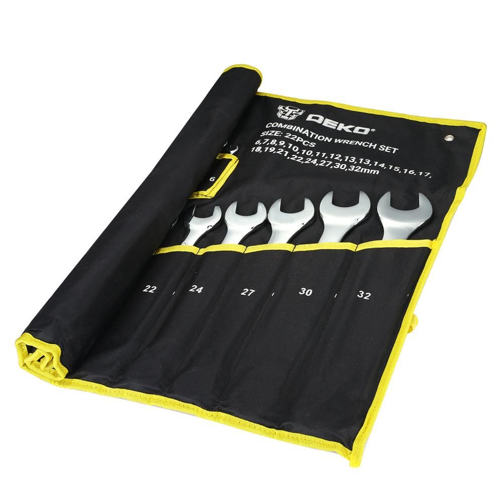 - Набор комбинированных гаечных ключей DEKO DKHT22 в сумке (22 предмета) используется в автомастерских, в гараже, на ремонтно-строительных площадках для обслуживания крепежа.