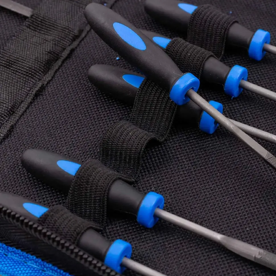 Набор напильников и надфилей разнопрофильных предназначены для тонкого опиливания, зачистки поверхностей, доводки небольших и совсем крохотных деталей. В наборе 17 предметов. Надфиль - это мини напильник, которым выполняют тонкую механическую обработку деталей из различных материалов, где с помощью обычного напильника это сделать проблематично. Абразивный инструмент, маленький алмазный напильник предназначен для работ с обработкой металла, дерева, пластмасс и твердых материалов. Набор алмазных надфилей имеет наконечники различной формы, что обеспечивает всестороннее применение: в металлообработке, ювелирном деле, моделировании и других областях, где требуется высокая степень точности и детализации. Для удобства использования и транспортировки набор поставляется в прочном чехле.