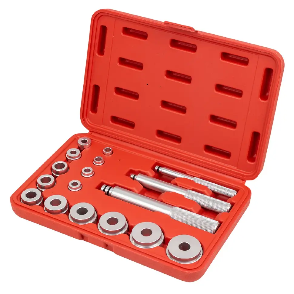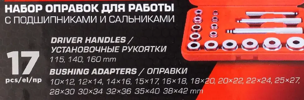 Набор оправок FORSTIME FT‑917T1 (17 предметов) предназначен для аккуратной установки и демонтажа подшипников и сальников без повреждения посадочных мест. Подходит для обслуживания автомобилей, мотоциклов, сельхоз- и промышленной техники. Комплект охватывает широкий диапазон диаметров, что делает его универсальным для различных ремонтных задач.