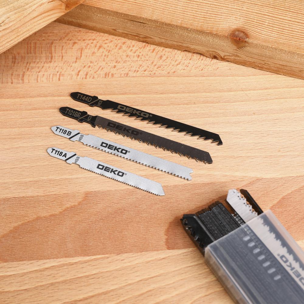 - Набор пилок для лобзика по дереву и металлу DEKO JSB40, 40 шт - совместим с любыми электролобзиками.
