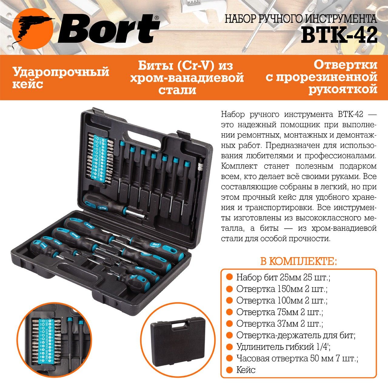 Набор ручного инструмента Bort BTK-42