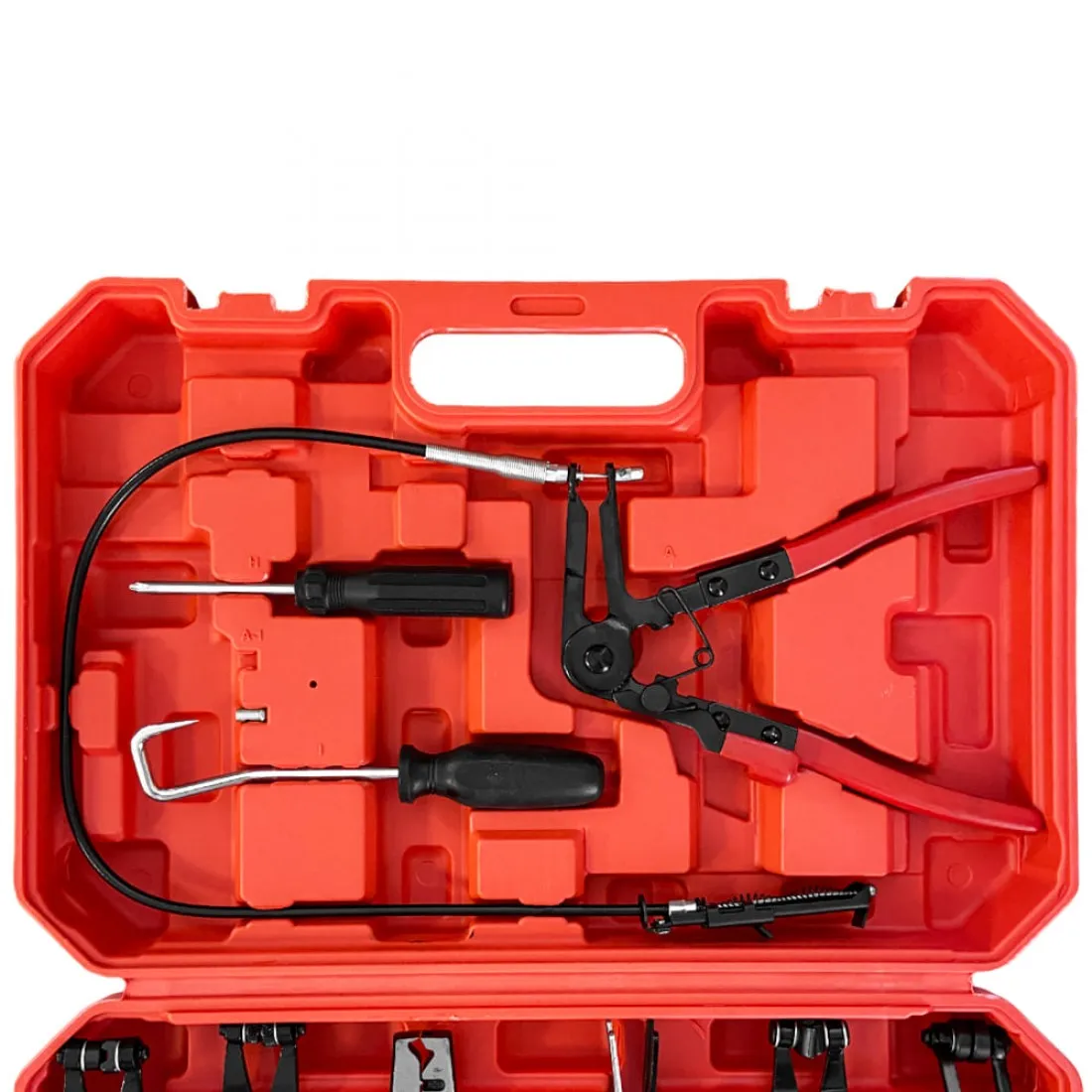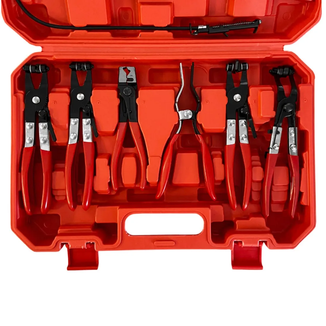 Универсальный комплект предназначен для быстрого и безопасного демонтажа и монтажа винтовых, пружинных и защёлкивающихся хомутов на патрубках и резиновых шлангах без повреждения покрытия детали.