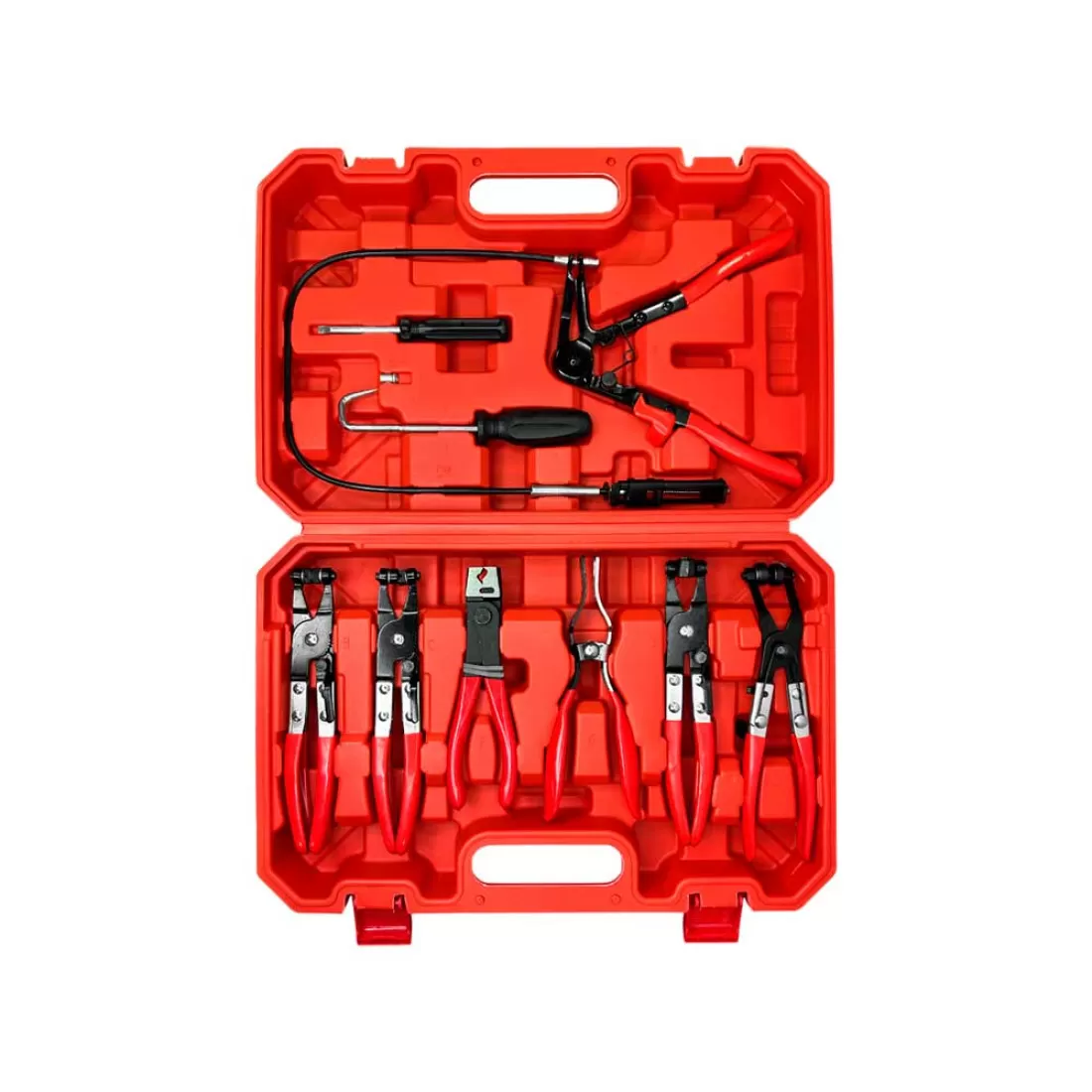 Универсальный комплект для демонтажа и установки винтовых, пружинных и защёлкивающихся хомутов на патрубках и шлангах без повреждения покрытий и уплотнителей.