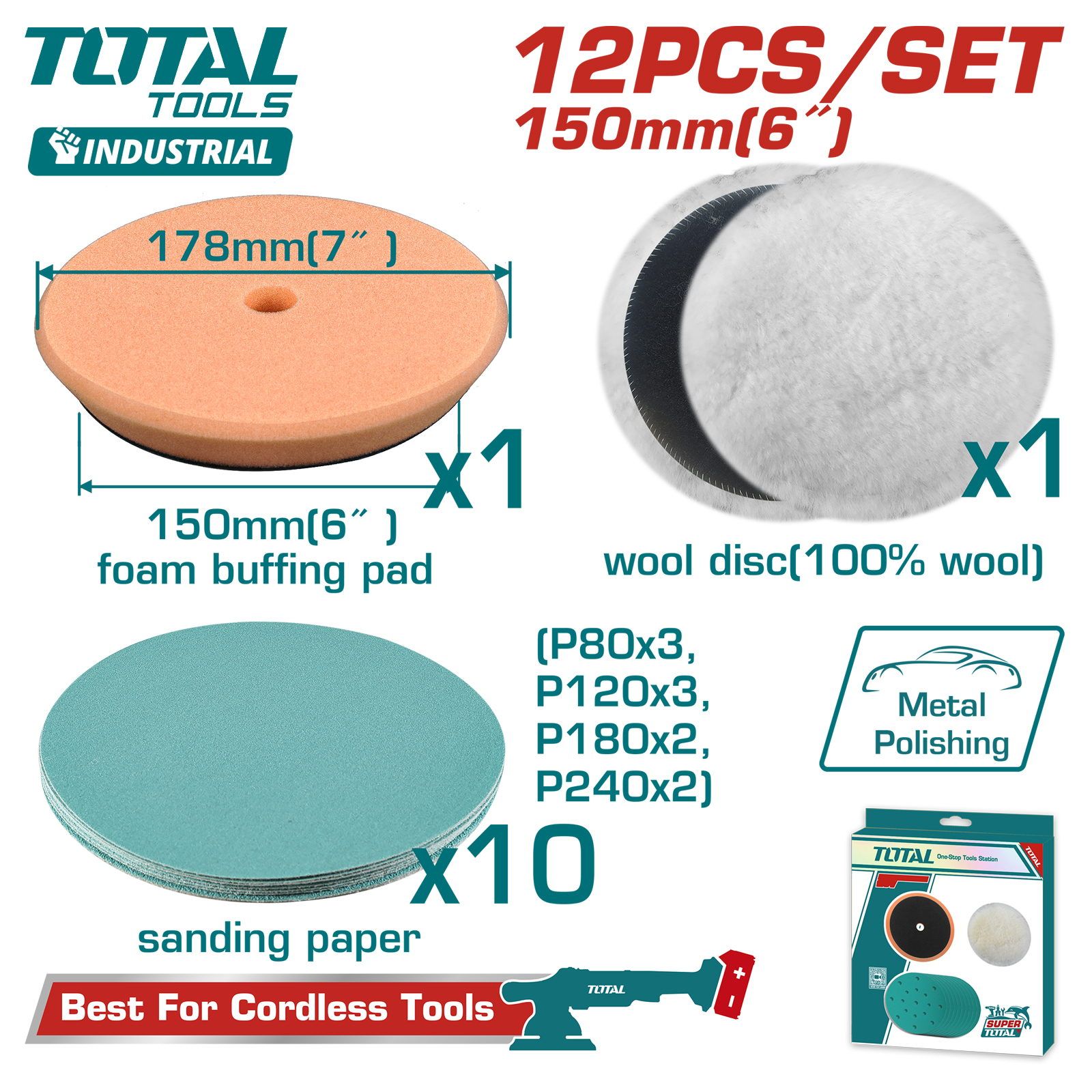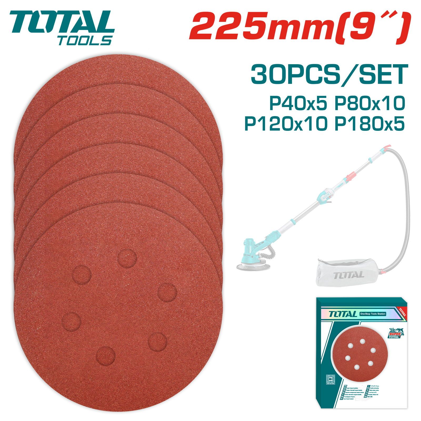 Набор шлифовальных кругов 225 мм TOTAL TAC225030 (30 штук)