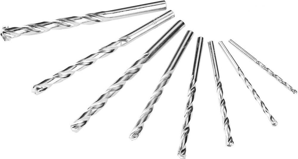 - В наборе 8 сверл диаметром 3, 4, 5, 6, 7, 8, 9, 10мм.