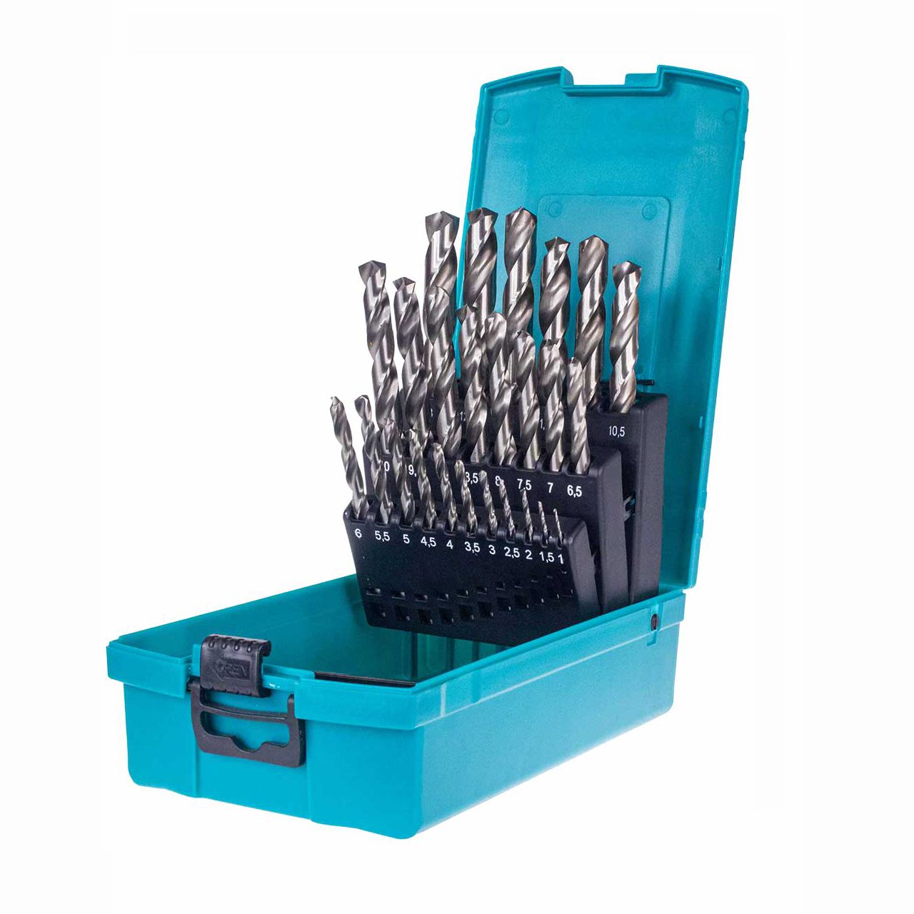 11мм, 11.5мм, 12мм, 12.5мм, 13мм - Коробка пластиковая, с держателем для сверл