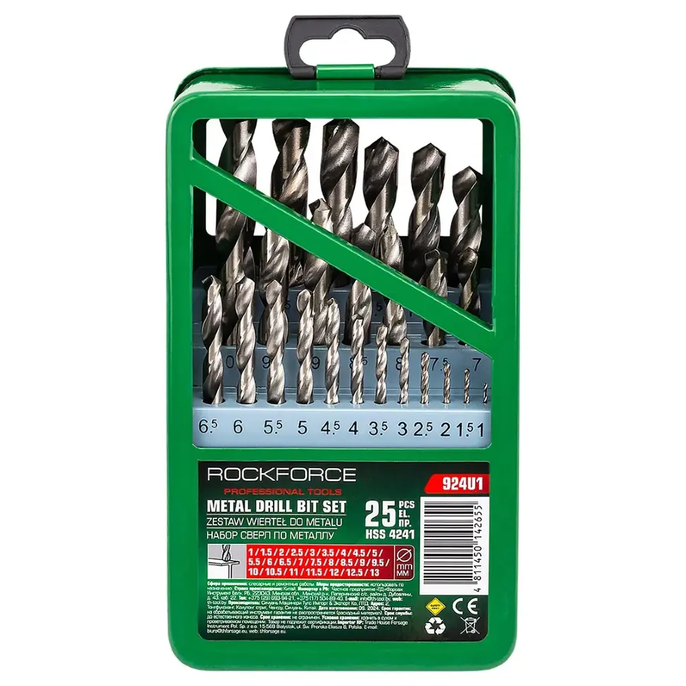 Набор сверл по металлу 25 пр. RockFORCE RF-924U1 предназначен для сверления отверстий в различных металлических материалах. Сверла изготовлены из быстрорежущей стали (HSS) и обеспечивают высокую производительность и точность при работе.